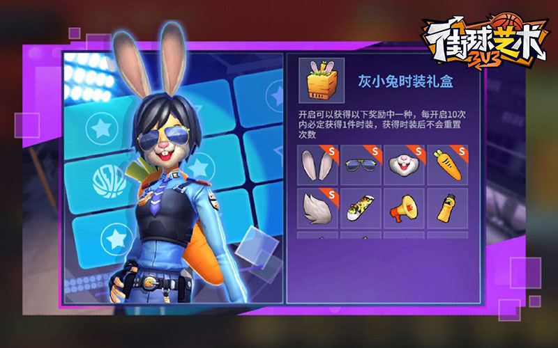 叱咤球场战正酣,超炫时装酷萌翻!《街球艺术》不仅有热血的球场竞技,还有激萌的炫酷时装。10.23日《街球艺术》灰小兔时装礼盒萌动来袭,快来领取吧!