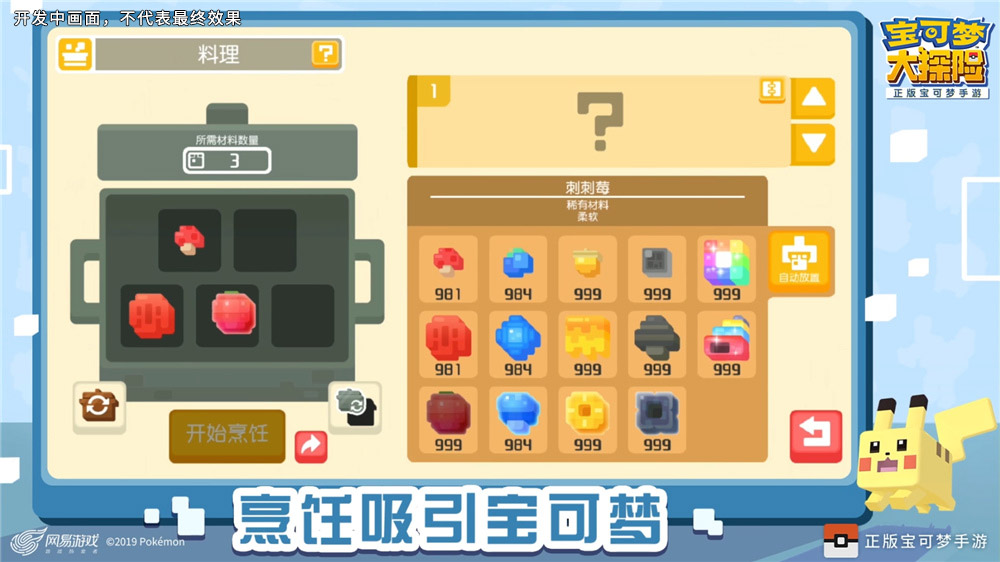 由网易、The Pokémon Company、GAME FREAK Inc.合作开发的正版宝可梦手游《宝可梦大探险》今日发布游戏玩法宣传视频,烹饪料理、组建队伍、探索小岛、培养强化、友谊切磋,好友互访······丰富玩法邀你尽情畅享! 百变料理,吸引探险伙伴 想要探索方可乐岛,首先探险家需要找到宝可梦伙伴,而烹饪美味的料理,是吸引宝可梦们来到大本营的最佳方法!游戏中,探险家从主线关卡、食材采集等渠道获取各类材料后,根据不同配比投入到不同品质的烹饪锅中,即可煮出不同类型和稀有度的料理。 料理的种类决定了它对哪类宝可梦有着较强吸引力,而料理的稀有度高低则与宝可梦的稀有度和等级息息相关。比如方可乐红烩汤是红色类宝可梦的最爱,方可乐黄焖锅是黄色类宝可梦的最爱。根据稀有程度,料理可分为普通、好吃、超好吃、好吃到不行与极致美味五个稀有度,料理稀有度越高,吸引到稀有宝可梦的概率也就越高。 组建队伍,搭配探险阵容 有了宝可梦伙伴,接下来自然是组建探索队伍,开始精彩探险!宝可梦们不仅造型不同,属性和招式各异,连同一种宝可梦也有着体力、攻击力、招式和宾果奖励等方面的不同,派谁上场,需要探险家根据关卡属性、对手实力等因素决断,也将为你带来更多样的策略乐趣和对决体验。 勇敢前行,探索方可乐岛 在方可乐岛的探险中,探险家不仅可以征战主线关卡,在不同的区域遭遇不同的对手,逐步揭开方可乐岛之谜,还可以在食材采集、方石寻宝、勋章挑战等国服独占玩法中收集资源,提升实力! 精心培养,造就最强伙伴 随着探险的深入,探险家将遇到越来越强大的对手,除了提升宝可梦等级或调整队伍阵容外,你还可以通过强化系统提升宝可梦实力! 强化系统分为方石锻造、特训和附加能力强化,方石锻造可提升方石的基础数值,附加或改变方石属性,随机附加方石效果;特训可以迅速提高宝可梦等级,改变或增加招式和改变宾果奖励;附加能力强化则可提升宝可梦在体力或攻击力方面的附加能力,获得更大的成长空间。 趣味对决,友谊赛切磋 在方可乐岛上,探险家还可以与其他探险家进行PVP趣味友谊赛,攻防双方各派三只宝可梦出阵,防守方坐拥地利,并可以使用友谊赛装饰强化自身限制对手;攻方则可因地制宜,根据对方宝可梦阵容调整队伍,以获得属性上的克制。赢得友谊赛后可获得奖励和积分,累计友谊赛积分还可提升段位,攀登排行榜,赢取奖励! 欢乐互动,拜访好友大本营 《宝可梦大探险》进一步丰富了社交系统,探险家们不仅可以在世界频道聊天交流,还可以互加好友,在亲密度达到关系匪浅之后就可以亲密私聊,为你带来更多游戏欢乐。探险家还可以拜访好友的大本营,与宝可梦进行友好互动,还有机会获得它们送上的惊喜小礼物! 预约公测,锁定众多福利 随着公测的日益临近,《宝可梦大探险》官网公测预约量也已突破100万大关,四重奖励已正式锁定,还有200万和500万预约奖励等你解锁!即刻登录官网,参与公测预约,扬帆起航登陆方可乐岛,与宝可梦一起开启全新探险历程! 关于《宝可梦大探险》 《宝可梦大探险》英文原名为《Pokémon Quest》,是株式会社ポケモン (The Pokémon Company)发行的Nintendo Switch和手机平台游戏,上线一个多月,累计下载量达到750万次,深受国内外玩家喜爱,目前国服版本由网易、The Pokémon Company、GAME FREAK Inc.合作开发。 关于《宝可梦大探险》的任何问题及交流,可通过以下渠道联系我们: 《宝可梦大探险》官网:https://pq.163.com 《宝可梦大探险》微博:#宝可梦大探险# 《宝可梦大探险》微信:pquest163 |