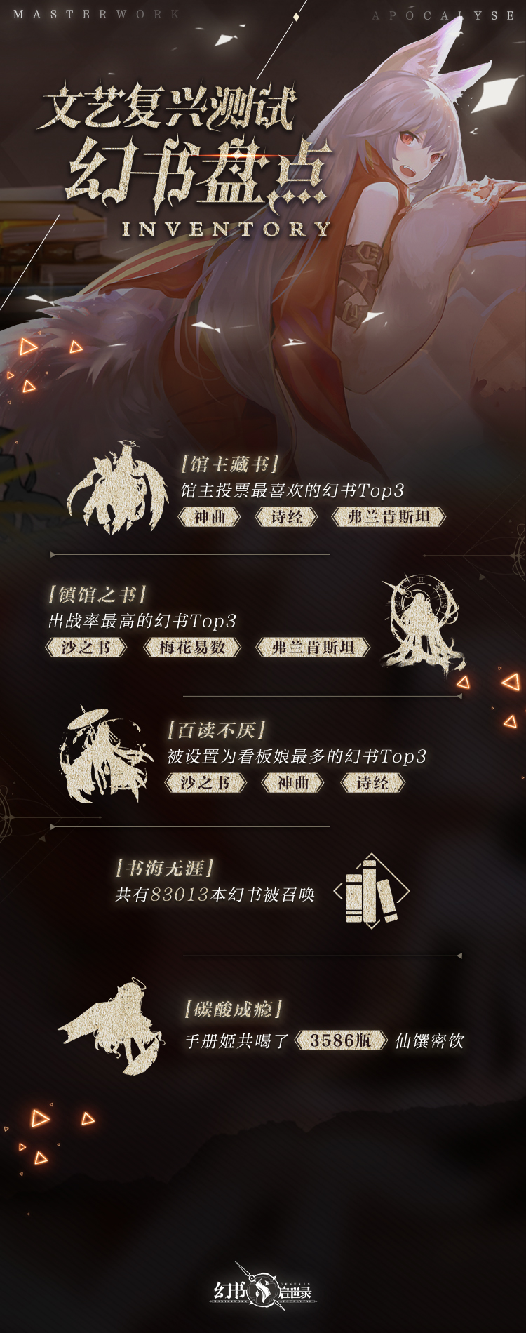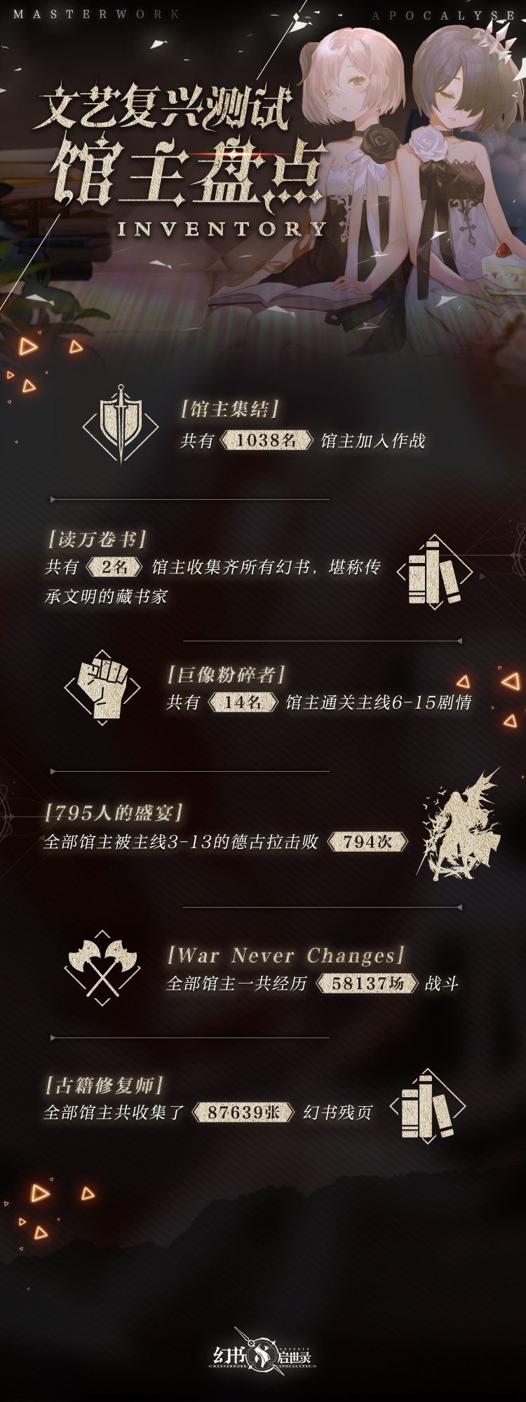 网易自研多世界幻想RPG手游《幻书启世录》首次iOS删档技术测试已于上个月正式结束!首批取得测试资格的馆主大人,在10月24日至27日期间完成了初次入馆体验。首度测试的《幻书启世录》都有哪些亮点?一份新鲜出炉的作战报告书带各位馆主大人回顾一番! 首测成就全纪录,趣味数据大揭秘! 短短4天的测试时间中,共有1038位馆主入主阿克夏之馆,带领幻书开启奇幻的冒险旅程。超过8万本幻书被馆主召唤而来,更有两位馆主收集齐了所有幻书,堪称传承文明的藏书家!如此爆棚的好运,愿馆主能延续到未来的测试中! 在不同风格的异世界中战斗,更是《幻书启世录》的一大特色!首次测试中,馆主们一共经历了58137场战斗,不少馆主都被反派Boss德古拉挡在了主线剧情的3-13关卡。要在幻书的世界中战胜强大对手,幻书的长线养成、合理的上阵组合搭配、对瞬息万变的战场局势把控都是必不可少! 《幻书启世录》中的德古拉 首次测试中,最受馆主欢迎的幻书是哪几位?最受馆主们欢迎的看板娘幻书是谁?出战率最高的幻书又是哪几位?以上这些有关首测的问题,都可以在以下的作战报告书中找到答案! (小标题)阿克夏之火降临,携手幻书修复破碎世界 自“阿克夏之火”被带到人间,人类文明得以传承。从“阿克夏之火”中诞生的“幻书”,则成为了人类知识的守护者。阿克夏之火以书籍为蓝本创造出的守护者,是一些特定的“灵智”的实体化产物。 阿克夏之火所选中的人类,将会被阿克夏之火赋予一簇契约之火,使其成为能够指挥操控幻书的幻书使。并不是所有人类的灵魂都能承受阿克夏的力量,因此也只有少数人能够成为幻书使。 《幻书启世录》的玩家被选中成为幻书使,担当阿克夏之馆馆主,带领幻书们为修复破碎的世界而战!《幻书启世录》的各大社区平台将同步更新下一次测试相关信息,热切地欢迎每一位馆主造访幻书世界,以我们的意志书写全新的传奇故事! 如需进一步交流或有任何问题,可通过以下渠道联系我们: 微信公众号:huanshu163 官网:https://hsqsl.163.com 微博:幻书启世录 官方贴吧:幻书启世录吧 B站主页:https://space.bilibili.com/430897760/ Taptap:https://www.taptap.com/app/166951 玩家交流QQ群:571812737 关于《幻书启世录》 《幻书启世录》是一款由网易游戏自主研发的幻想多世界RPG手游。游戏以“书籍”拟人和“多重世界”为题材,玩家将扮演唯一能感知“现实被修改”的人,穿梭在题材各异的多重世界中,收集并养成强力的幻书们,和他们一起与虚假的世界战斗。游戏以独创的二次元画风,精致生动的3D模型表现,呈现出西方幻书的华丽与神秘,和中国幻书的华韵。 |