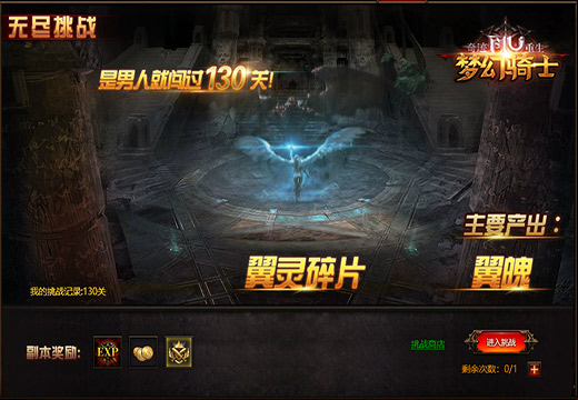 塔人《奇迹重生:梦幻骑士》不但继承了MU众多经典元素,更独创了许多精彩的玩法,各种极具挑战的副本就是一大特色。《奇迹重生:梦幻骑士》有很多个副本玩法,有的可以组队挑战,有的玩家只能孤身迎战,有的甚至可以和其他服务器的玩家一起战斗过关。不过这么多副本中如果要选择一个难度最高的,相信很多玩家都会把票投给“无尽挑战”! 越来越难的无尽挑战 无尽挑战副本是《奇迹重生:梦幻骑士》的单人挑战副本之一,每天都可以挑战一次。而且随着版本的更迭,玩家的实力不断变强,无尽挑战的关卡数也随之增多。无尽挑战的最大特点就是“一关比一关难”。在当前版本无尽挑战一共130关,相信随着玩家的整体实力逐渐增加,无尽挑战的关卡数也会随之增加。 硬实力才能走到最后 无尽挑战的怪物类型很简单只有两种,分别是魔法攻击型和物理攻击型。所以想要真正打穿130关,完成终极挑战,没有过硬的实力自然是不行的。而且玩家还不能“偏科”,在防御属性方面必须物防和魔防兼备。比如物防过硬,但是魔防拖后腿的话,到了后面的关卡很容易轻松推倒了物攻怪物,却被魔攻怪物打的不能自理! 无尽挑战助力神翼展翅 每次无尽挑战副本战斗结束之后,玩家除了可以收获海量经验和金币,更重要的是收获强化神翼技能的关键道具“挑战徽章”,玩家能够打过的无尽挑战关卡数越高,结算时获得的奖励也就越多。想要让自己的翅膀变得更加强大,为角色提供更高的战斗力加成,就需要海量的翼灵碎片和翼魄,想要获得它们就需要使用挑战徽章来兑换。 |