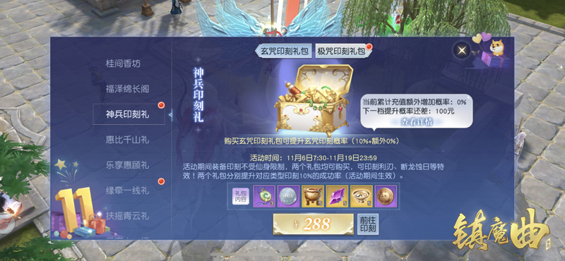 一年一度的双十一刚刚过去,天命者们是否意犹未尽呢?网易治愈系MMO《镇魔曲》双十一特别庆典“盛世之欢”还在继续,至11月19日止,天命者们还能继续狂欢,享受双十一的余韵与海量福利! 魅力排行,谁是“单身贵族”? 《镇魔曲》“盛世之欢”庆典里,天命者们均可报名参与“明珠耀世”,在魅力排行榜上展开大比拼!写下宣言、上传头像,把你最大的魅力展示出来,再发动亲朋好友为你送上礼物、提升魅力值吧! 活动结束时,名列前茅的天命者即有丰厚奖励、绝版称谓等好礼送上!每次赠送礼物,更有“单身汪寻找券”、明光玉等海量福利领取!说不定你所钟意的TA,最后就能缔下三生缘,携手闯荡中州大地!利用“单身汪寻找券”还能参与“众里寻汪”,翻牌子拿奖励! 携手同行,双十一来“脱单” 双十一虽过,“脱单”还是要继续!《镇魔曲》“盛世之欢”便为天命者们准备了两个“脱单”好去处:心有灵犀与执手千帆! “心有灵犀”里,天命者们与心仪的TA组队至月下仙人处,便可通过趣味问答测出你们的缘份;“执手千帆”里,天命者们需要组成队伍挑战趣味副本——紧密互动间,丰厚奖励收入囊中,说不定还能找到你的另一半,结下三生缘! 收集旺旺币,绝版称谓、头像框等你拿 双十一,“剁手”也是一道别样的风景线。《镇魔曲》“盛世之欢”特备海量巨惠福利,回馈天命者们一直以来的支持!购入礼包等还能获得旺旺币,除了前往“福泽绵长阁”兑换头饰、翅膀、真龙、唤灵卡、神兽元魂等珍稀奖励外,更有绝版称谓“快意风云”以及典藏头像框等送上! “神兵印刻礼”为天命者们取消印刻的仙身限制,尽情印刻提升实力,还能收获玄咒、极咒等珍稀奖励,为装备印刻利刃、断龙蚀日等稀有特效! “瑶光盛开”、“惠比千山礼”、“福满多多礼”、“青云直上礼”等多重返利活动也同步开放,福利众多折扣巨大,双十一没抢到的,这里都能“剁”个痛快! “盛世之欢”活动丰富奖励多多,各有乐趣不同!《镇魔曲》“双十一”庆典继续,天命者们还不赶快上线,领取属于你的海量福利? 关于《镇魔曲》手游: 双生之境,千形万象——治愈系MMO《镇魔曲》,2019年度新版上线!涅槃之后全新境界,元神分身正式到来,共闯首个多重宇宙概念副本“鸿蒙境”!温情家园北欧风焕新,收藏、点化实力更进;中州万物缔结灵契,七十二变化形万千!更有一册在手,记录中州旅途,共写“镇魔纪念册”!七大职业、十一大主角、21个战斗流派,“战法牧”组团开荒。交易·师徒·夫妻·家园,真实关系温情陪伴! |