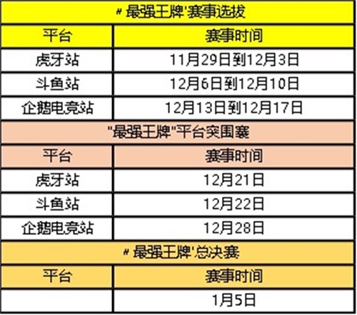 11月29日,腾讯多角色射击手游《王牌战士》首届官方赛事“最强王牌”将率先于虎牙平台开赛,斗鱼、企鹅电竞两大平台将接棒开赛。 “最强王牌”赛事以选拔游戏内5大不同定位选手的最强玩家为目标,与虎牙、斗鱼、企鹅电竞联合举办为期三周的线上赛,三大平台分别在每周决出15名候选最强者进行线下平台突围赛;最终各平台将从各自的15人中挑选每个定位最强的选手组成一支“最强王牌”代表队进军总决赛。 “最强王牌” 赛程安排 “最强王牌”赛事即将开赛 谁是你的本命定位? 11月29日起,《王牌战士》手游首届官方赛事“最强王牌”将在虎牙、斗鱼、企鹅电竞三大平台陆续开赛。届时,活动期间晚19点至22点,玩家都能前往活动中心“最强王牌”活动参赛。活动以单人匹配模式进行,进入对局后可使用任意英雄进行匹配,最后将根据玩家所使用的英雄定位进行成绩结算。每局对战结束后,系统将根据玩家所使用的定位英雄当局表现分进行结算,最终综合该定位选手使用成绩进行独立排名。 目前,游戏已推出29名定位、武器、技能、性格不同的选手;根据战斗风格,选手们被划分为狙击、重装、游击、压制、突袭等5大定位。这些选手里,究竟哪一定位会是你的本命?欢迎玩家们前来验证。 狙击定位选手一览 重装定位选手一览 游击定位选手一览 压制定位选手一览 突袭定位选手一览 赛事规则完全解析 助你强势上榜入围决赛 根据《王牌战士》手游“最强王牌”赛事的规则,玩家在同一局只计算单局内使用的选手成绩的表现分进行排名。如,你同一场中使用了“游击”、“压制”、“突袭”三类选手上场,默认使用表现分最佳的选手进入定位结算。 与此同时,玩家在每个平台活动周期内需累计参与20场比赛则可参与上榜排名,并可以领取排名奖励。同时仅选取前20场次成绩作为定位结算的最终成绩;如玩家不满意当前成绩,可在活动期间选择“重新挑战”。大赛分三个平台,三个赛段,每个赛段结束后成绩将会重置。每周全服排行榜各定位前三玩家将被邀请参与该对应平台的线下突围。 我方阵营展示 达成本场超极限成就 “火神计划”即将揭晓 全新版本重磅登场 跌宕起伏的剧情,始终牵动着广大《王牌战士》手游玩家的心。特别是“多尔玛小镇事件”过后,故事的走向又将如何发展,卡洛琳又将如何抉择成为最大的悬念。如今,伴随着游戏全新版本的发布,全新剧情“火神计划”将正式揭晓! 多尔玛小镇事件过后,卡洛琳不惜退出阿瑞斯部队,以调查未婚夫在多尔玛小镇发生的事情。她先后遭遇小丑,巨熊,并隐约得知,瓦尔哈拉带走了卢卡。与此同时,瓦尔哈拉正在对截获的某“火神计划”展开研究,而研究对象的真面目也将正式揭晓。 “火神计划”剧情副本为单人PVE玩法。在该副本中,玩家将化身为固定选手,与剧情角色进行关卡式的1V1对抗;对战期间,玩家将逐渐揭开冈格尼尔、洛基、卡洛琳的背后谜题。 火神卡洛琳情侣 《王牌战士》手游首届官方赛事“最强王牌”即将于11月29日在虎牙平台率先开赛,想要与全服强者决一胜负的玩家千万不要错过这个一战成名的机会。 |