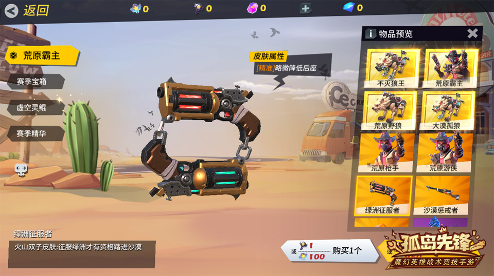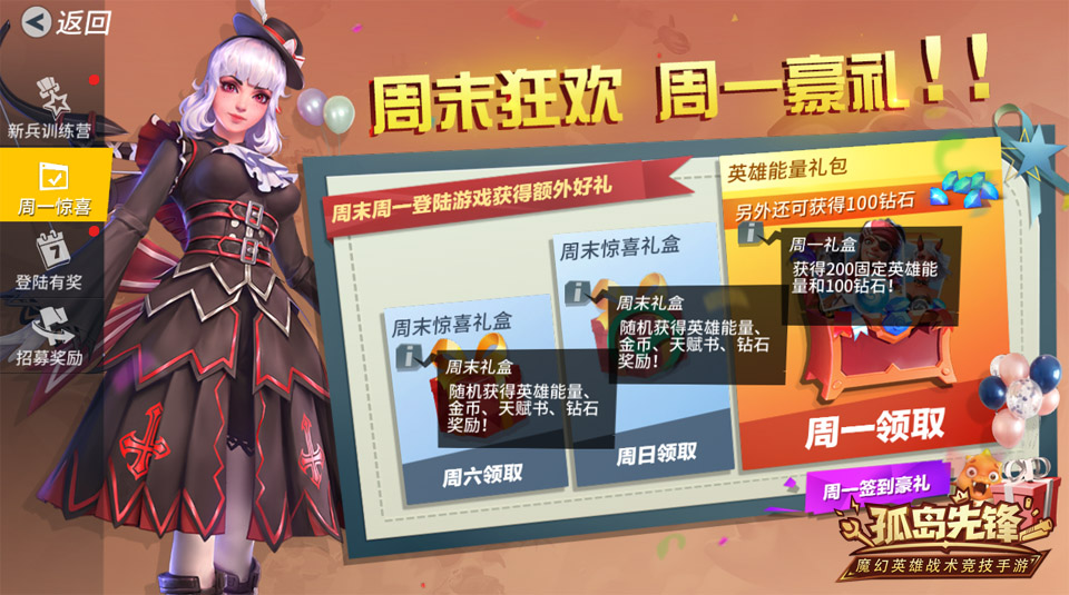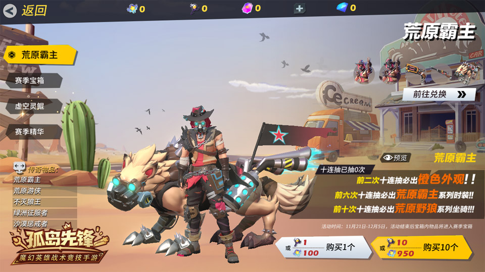 西部牛仔晋级荒原霸主,赏金猎人废土奇袭称雄!网易首款魔幻多英雄战术竞技手游《孤岛先锋》11月21日版本更新后,新赛季宝箱震撼登场,深受玩家喜爱的赏金猎人怀特将有机会获得全套“荒原”主题皮肤,在岛上完美还原大漠风情! 荒原霸主 废土归来 在广袤无垠的废土世界,赏金猎人怀特曾经凭借实力制霸荒原,得到了这片土地上生物的认可与尊敬。随着11月21日更新的到来,赏金猎人限免开放,而新赛季宝箱“荒原霸主”也将重磅登场,为《孤岛先锋》带来真正的大漠风暴! 玩家通过抽取即有机会获得赏金猎人可升级皮肤,包括荒原枪手、荒原游侠、荒原霸主三种不同形态,造型由简朴利落到霸气十足,象征着怀特在荒原期间的经历与成就。 除了怀特自身的变化外,坐骑也拥有全新的可升级皮肤:荒原野狼、大漠孤狼、不灭狼王。 废土世界强者潜伏四方,日常行动危机重重,自然也少不了机能强大火力凶猛的武器傍身。怀特专属武器皮肤绿洲征服者和沙漠惩戒者,就是他在荒原上获得的特别纪念品与好帮手。 商城新品上架 周一惊喜开启 对《孤岛先锋》的英雄们来说,商城是他们竞技之余调节心情的钟爱之地,不断上新的精品货物不仅装点了他们的个人形象,同时也为试炼生活增添了许多时尚休闲色彩。本周商城更新了夜之魔女皮肤“蓝色妖姬”、下落特效“爱心漫天”以及喷漆“拳王凝视”等人气新品,喜欢它们就快带回家吧。 历经周末狂欢,周一又见豪礼相送!在活动“周一惊喜”中,玩家只需登陆即有机会连续三天领取丰厚奖励,其中周末惊喜礼盒开启后,玩家将获得英雄能量、金币、天赋书及钻石奖励,而周一领取的“英雄能量礼包”则将奖励200固定英雄能量和100钻石。 玩法进化 更多战术等你开发 在新版本中,玩家还将享受到游戏道具变化带来的新鲜体验。当“速战速决”出现时,准备区的秘宝选择内容中将增加部分神奇道具,例如顽童面具、水银沙漏、魔法棱镜、好运饼干和彩虹弹簧等,帮助玩家在战斗中获得更多优势。而拥有“复活卷轴”时,玩家只要持有队友的精元,就可以让他在自己身边复活,大幅降低复活风险和移动成本。 网易首款魔幻多英雄战术竞技手游《孤岛先锋》,开启视觉、操作、竞技多重极致体验,海量福利活动诚意回馈新老玩家。即刻登录游戏官网,更多英雄资讯、玩法攻略一手掌握,对决战场等你开黑! 关于《孤岛先锋》: 《孤岛先锋》 首创多英雄魔幻战术竞技玩法,六大首发英雄,技能自由搭配,隐身、突进、控制、伤害无所不能!全新魔幻世界,多种族地形植被;圣堂祈祷系统,装备助你火力全开;随身恐龙坐骑,一键召唤策马奔腾;双重复活机制,淘汰化身小萌龙,坚持就能原地复活!魔性趣味玩法,紧张刺激惊喜不断! |