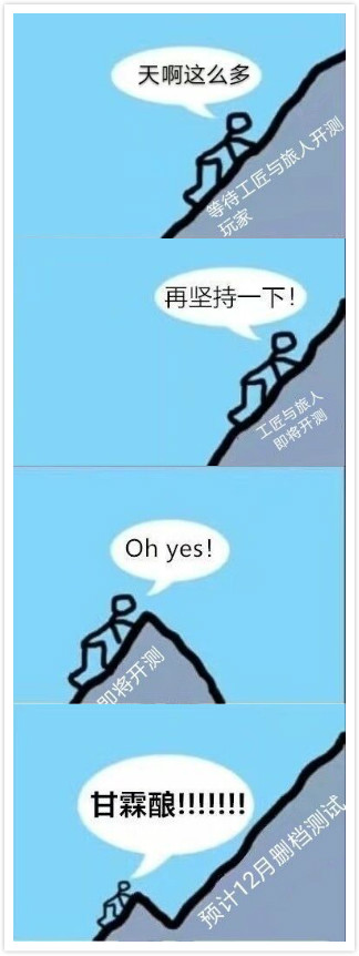近期,一款名为《工匠与旅人》的手机网络游戏引起游戏圈的关注,其独特的经营养成MMORPG设定,颠覆了目前众多手机游戏的唯战斗、多单机的狭小格局,因此当游戏宣布即将于2019年末首测,并陆续启动抢码活动时,立即得到了玩家的热情响应。 上周,官方放出的首个抢码活动围绕DIY表情包,不少玩家“被迫”化身表情包大师,制作出的表情包令人忍俊不禁,接下来就挑选部分作品一同欣赏吧。 催促求码类 这类表情包相当多,中心思想就是围绕,赶紧首测,求首测码。 1)题目:丐帮讨码? 2)题目:GKD(同人手绘作品) 3)题目:一山还比一山高…… 沉浸幻想类 这部分玩家相对已经了解了游戏玩法,对自己未来的发展有了规划,通过表情包可以发现他们已经YY晚期阶段了…… 4)全服第一心好累,这腿每天太沉重 5)找我做装备的订单已经排到明年了! 6)玩什么生产?抢劫商人去 关于《工匠与旅人》: 《工匠与旅人》是一款“非正常”旅人生活体验手游。本作中的旅人拥有先天特点,会倾向战斗、生产、贸易等不同领域,玩家可依据特点将他们分配到合适工作来为城镇建设发光发热,譬如让书呆子当法师出征冒险,让万人迷当商贩对外贸易……当然,玩家可以随时改变他们的工作,前一秒还是手握神级魔法的法师,后一秒手握锄头在农舍当农夫,看得路边群众直摇头:这法师,超不正经耶! |