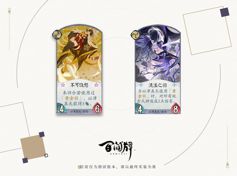 自从以津真天入驻百闻牌,蜃气楼中就流传起了一句话:“虽然你被以津真天暴打的样子很狼狈,但你倒下时头上插满黄金羽的样子真的很靓仔。” 今天给大家带来了以津真天的卡牌介绍,对方发起了强力的羽毛攻击,接招吧! 【式神介绍】 以津真天周期性获得的黄金羽可以瞬发对敌方牌手造成两点伤害,其中以津真天大部分卡牌都能被黄金羽强化,使得她成为一名注重卡牌连招,爆发能力强的输出形式神。 【法术牌】 黄金羽能瞬发对敌方牌手造成伤害,同时能增幅以津真天其他卡牌。 金羽焕生可以快速获得两张黄金羽,确保了以津真天战斗资源储备。 射怪鸟事能够在以津真天气绝后将她的专属牌置换为等量的牌,保障了其他式神的战斗力。 觉醒·以津真天可以加快黄金羽的获取速度。同时可以使用黄金羽消耗或补刀敌方式神,赢得场面优势。 【战斗牌】 金风流羽配合黄金羽后不消耗鬼火,进攻更加灵活。 千羽风之舞配合黄金羽可以将一张黄金羽变为金风流羽,一点鬼火就能完成整套combo,将爆发伤害提升了一个量级。 风之舞可以被黄金羽增幅,拥有不错的攻防成长,一勾玉的等级要求,让它能灵活运用于战局中每个时期。 【形态牌】 不可饶恕配合黄金羽后可以获得高额攻击力,让以津真天在中期更具威胁性。 流浪之羽在以津真天使用【黄金羽】时,额外对敌方全体式神造成两点伤害,有效地削减敌方全体式神的生命值,进一步扩大己方优势。 (ps:上述卡牌技能效果以游戏实装为准) 【卡面欣赏】 为了庆祝百闻牌掉毛势力喜提一员干将,我决定带上以津真天、鸩、大天狗、姑获鸟组成一支掉毛队去征战天梯,玩家们觉得能靠这套阵容突破九段么? |