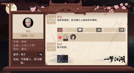 身无彩凤双飞翼,心有灵犀一点通。《一梦江湖》灵犀系统现已上线,首发四位NPC供玩家攻略,专属剧情回忆,亲密双人动作,趣味互动玩法……甜蜜惊喜等你体验! 【多个角色 不同类型等你攻略】 《一梦江湖》全新NPC侠缘系统上线,粉红色系统界面充满着甜蜜的味道,四位人气名士供玩家攻略:万圣阁少阁主方思明、少林大师如尘、温柔神秘的苏枕雪、天机楼桂宫陆轻眉。他们各自拥有不同的身份、性格、经历,谁会成为你的心上人呢。 【专属对话 甜言蜜语说给你】 在《一梦江湖》的灵犀玩法中,玩家通过周常获得的伴手礼可以赠予NPC换取信物,集齐一定信物就能解锁对应人物的对话和语音,两人之间亲密日常的聊天带你逐渐走进他/她的世界。 【江湖客栈 好友圈等你来撩】 江湖少侠的冲浪生活怎么少得了“朋友圈”?灵犀系统上线后,四位NPC也对玩家开放了自己的江湖客栈,分享生活点滴与感受,玩家也能在客栈里与他们互动。细细品来,甜蜜小心思都藏在TA的三言两语中。 【如胶似漆 专属双人动作】 在NPC侠缘系统,每位NPC都有特别的交互动作,相拥携手横抱同行,专属你的浪漫体验。充满霸道甜的横抱,温情满满的相拥,甜甜蜜蜜的牵手与浪漫的并肩同行,每次双人互动都能让你体验到被人呵护爱恋、有所依靠的心安。 【独家回忆 开启甜蜜灵犀游戏】 玩家通过日常的互动、对话、约会等行为,即可累积侠缘专属因缘值,凭借一定程度的因缘值和信物即可向TA发起更进一步的亲密行为,甚至解锁专属剧情、多种互动小游戏,更有神秘惊喜彩蛋等你发现! |