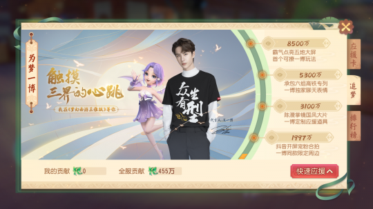 12月18日,《梦幻西游三维版》全平台公测正式开启。全能偶像王一博诚邀诸位少侠为梦一博。现在,王一博定制玩法已在游戏中上线,通过完成日常任务,即可为一博解锁线上下重磅福利。少侠赶紧前往官网下载(https://xy3d.163.com/),与一博做一场永不打样的梦吧! 独家营业为梦一博,王一博成《梦幻西游三维版》代言人 他是《梦想合伙人》中的国民初恋,是《陈情令》中雅正端方的蓝忘机,是《陪你到世界之巅》里为游戏而生的季向空。歌手、赛车手、滑板爱好者、主持人、青年演员……过往的每一个角色,一博都以热爱为名,力求极致完美。凭借自己独特的天赋,一博正努力点满“技能树”,在风华正茂的年纪,探寻千面人生。 现在,他将在游戏领域施展拳脚,与《梦幻西游三维版》合作,担纲游戏代言人,并设计系列定制玩法,将他对梦想的执着融入“众生有型,万物有灵”的三界,将个性与自由的理念传递给更多玩家。这个飒爽少年的到来,定会为三界带来新的色彩。 梦幻三界十二时辰,与一博邂逅浪漫打卡点 为了能让少侠有更多机与一博互动,现在,代言人专属互动玩法已经正式上线,少侠可以前往大雁塔找到一博(与他的萌宠),需要提醒大家的是,每天17:00~20:00期间,一博将会出去周游三界。 而在12月18日~1月8日,如果少侠在三界某处偶遇王一博,并将合影的截图或视频带上#三界十二时辰#话题分享到微博,就有机会获得由《梦幻西游三维版》送上的周边大礼包一份,礼包包括一博珍爱的浪漫桃源纸雕灯、一博同款T恤、一博新国风绝美大片明信片、一博新国风造型立牌等丰厚大礼,千万不要错过哦! 参与游戏活动解锁资源,多重惊喜为一博应援 玩游戏还能助力一博事业?不错,少侠现在就可以前往游戏,参与“为梦一博”玩法,通过升级、完成日常任务、赠送织梦灯、邀请好友等方式,提升自己的应援积分,解锁游戏内外重磅惊喜福利。随着积分的不断累积,《梦幻西游三维版》将陆续为王一博解锁顶级时尚摄影师陈漫掌镜的国风大片、承包春运主题高铁、点亮五地大屏,以各种方式为一博应援! 众生有型,跨年抖音挑战赛即将打响 12月22日,首个跨年抖音挑战赛活动“众生有型”即将拉开帷幕。 少侠只要按要求上传抖音作品参与挑战赛#梦幻西游三维版#,将其分享到抖音平台,并带上话题#梦幻西游三维版 和@梦幻西游三维版,就将获得挑战赛参赛资格,优胜者更可以斩获万元现金大奖!投稿类型如下,玩家可以选择自己擅长的类型进行创作: 1、与示范视频中的一博合拍 2、参考示范视频完成一博捏脸挑战 3、用《梦幻西游三维版》游戏画面进行视频创造 届时,评审团会根据视频相关度和点赞数选出16名优秀参赛选手,根据排名为他们送上最高超过万元的现金大奖!此外,《梦幻西游三维版》还将为视频质量最高的选手特设为梦一博奖一份,并为其送出王一博亲笔签名照1张! 《梦幻西游三维版》全平台公测已经开启。在这个全新的世界里,王一博等待着与亿万少侠一同探索其中的每一个细节。不论你是否是王一博的粉丝,你都可以与他结伴而行,在圆满自己的梦幻情怀同时,感受一个有情有爱有温度的三界。 关于《梦幻西游三维版》手游: 《梦幻西游三维版》是由网易梦幻西游金牌团队研发的次世代3D即时制手游,延续了梦幻西游的经典玩法、独特的国风美学,并塑造了一个万物有灵的西游大世界:随心选择的善恶身份、自由结交的仙魔精怪、无定式的剧情发展、开放探索的游戏规则……即刻启程,触摸三界的心跳。 更多游戏详情请关注 |
