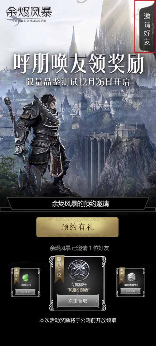 由龙图游戏自主研发的中世纪魔幻史诗MMO手游《余烬风暴》限量品鉴测试将于12月26日正式开启,预下载今日开放!现在登录《余烬风暴》官方网站即可抢鲜下载游戏! 激活码,限量领取先到先得! 现在关注“余烬风暴”官方微信公众号,点击“领激活码”按钮,即可领取本次品鉴测试激活码,iOS及安卓用户均可参与,激活码数量有限,先到先得! 玩游戏,赢Switch! 本次测试中,玩家可以通过提升个人实力、打造个性外观、提供意见建议等多种方式参与测试活动,Switch、京东卡等万元豪礼等您领取!活动无任何门槛,所有玩家公平竞争! 邀好友,领绝版公测称号! 现在关注“余烬风暴”官方微信公众号,点击“福利H5”按钮,邀请好友一起游戏,即可领取“风暴引领者”绝版公测称号及专属大礼包等多重奖励! 沉浸感,畅享魔幻大世界 《余烬风暴》通过主机级的画面品质高度还原中世纪风情,为玩家带来沉浸式的游戏体验!团队策略副本、职业技能组合带你领略全方位的战斗乐趣!高自由度捏脸系统、时装外观定制,让你充分展示自我个性!坐骑、宠物捕获养成,钓鱼、烹饪等丰富的生活玩法,让你在没有战斗的日子里也不无聊!赶快加入我们,一起探索不一样的异域大陆! |