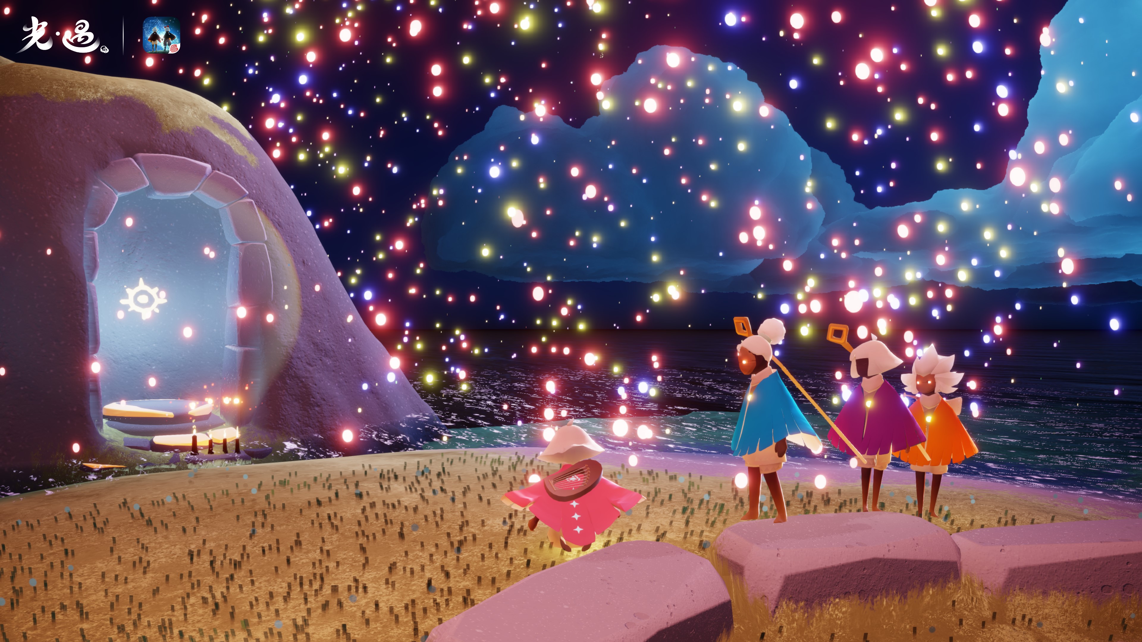 2012年度最佳游戏《风之旅人》制作人陈星汉新作,由网易游戏代理的《光·遇》在上线 App Store 6个月后荣获 App Store 年度 iPhone 游戏!岁末回馈,感恩相遇,《光·遇》宴会节、跨年烟花秀、全服福利活动限时开启! 【派对时刻 与三五旅伴共赴宴会】 绚烂灯火遍布王国,映照繁星夜空,天空王国处处充满欢庆、喜乐和祥和。虚实世界的交处,“神秘空间”,也将换上限时装饰,等候各位旅人赴宴。 在头顶圣诞帽的神秘旅人指引下,你会进入宴会时刻的神秘空间,熊熊跃动的炉火,恍若坠星的灯帘,静候归属的礼物包裹,灯彩点缀的圣诞树……温馨且喜庆的宴会节装饰,与你一同静候宴会的开始。 赴宴怎能缺少盛装,记得换上宴会节限定装扮,在神秘空间的派对长桌上,与其他旅人分享节日的祝福与温暖,一同畅享节庆的时光。当然,别忘了带上你的旅伴,与TA共赴这派对盛宴,到派对现场邂逅来自现实的“先祖”,聆听他们讲述有关团聚与亲情的故事。 派对不止有团聚,更有分享与心意,为了让节庆期间仍在归途的旅人们也能感受到宴会的欢庆,宴会节期间完成每日任务的旅人们,将能获得翻倍的烛光谢礼。 【携手庆新岁 定格花火绽放的时刻】 新岁的钟声临近,云中世界的火树银花也将会在元旦夜绽放。元旦凌晨0点至次日凌晨0点期间,每到整点将会给旅人们献上持续五分钟的跨年烟花秀。寄予旅人们希冀和祝福的烟火将与闪烁的繁星一起,为新一年的旅途挂上光亮和色彩。 岁末庆相逢,新岁幸相伴,想同你携手赴宴,想与你感受花火的温度,新的一年,《光·遇》愿一直陪伴! 《光·遇》已于6月21日正式登陆 App Store ,玩家目前即可前往 App Store 进行下载! |