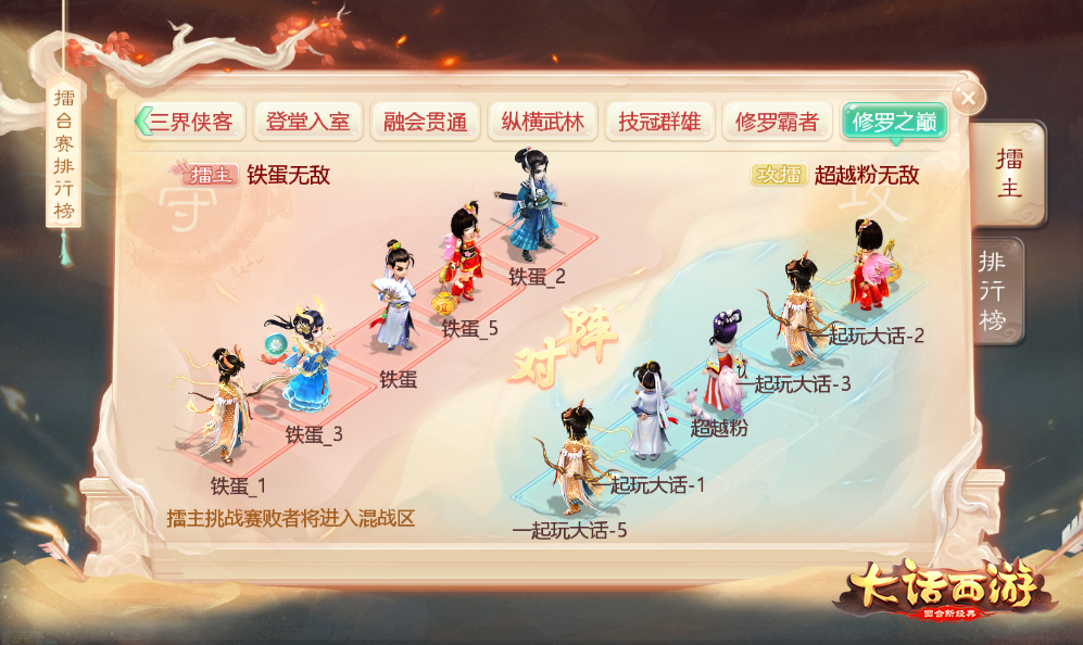 比武擂台热战启,百亿赏金待君来!《大话西游》手游全新资料片“修罗古城”火热上线,全新地图擂台玩法开启PK新热潮,等待三界侠士们前来古城武会天下豪杰,力攀三界巅峰!今日修罗古城中比武擂台火热开启,为了鼓励更多的侠士们前来参与全新玩法,擂台奖励豪华加码,百亿赏金全民分享!快来看看都有哪些精彩活动等着大家吧! 惊喜数字送幸运 擂台挑战赢巨奖 作为此次新资料片中的重要玩法,周末限定的“擂台挑战赛”中,玩家们可以根据自己的等级和战力参加不同组别的擂台挑战,和全服高手一同争夺擂主之位与丰富奖品。 2019年12月19日-2020年1月16日期间,在周末玩法“擂台挑战赛”玩法中,每周都将公布一个惊喜数字,玩家只要当周擂台赛排名与该数字有关,即可参与瓜分巨额奖励。为了鼓励大家踊跃参与这个燃情刺激的全新玩法,在12月26日游戏更新后,道具服幸运数字的奖金将大幅加码,足足有100亿银两之多!八个组别中各个组别排行榜前1000名的玩家,都有机会中奖,参与瓜分百亿巨额银两的奖励哦! 挑战擂台得宝箱 英雄厚礼等你赢! 除了荟聚各服英豪的周末玩法“擂台挑战赛”,在修罗古城中的常驻玩法“比武擂台”中玩家可随时设下擂台,发送系统通知给全服玩家,等待其他玩家前来攻擂。设定比武擂台时,玩家可以选择单人或组队的形式,设下擂台之后10分钟内如若有人应战则战斗开始,反之则擂台取消。 玩家上交200万银两即可报名参与“比武擂台”玩法,在PK获得胜利后将有机会能够获得“擂台宝箱”奖励,玩家首次守擂/攻擂成功1次,必得擂台宝箱1个,之后擂台PK中胜利还有概率获得擂台宝箱。每天总计最多可获得3个宝箱! 在12月26日-2020年1月9日期间,开启擂台宝箱将有几率赢取巨额银两,更有机会获得飞剑侠手办,游戏道具等珍奇奖励! 全民热战,名利双收!大话手游“修罗古城”资料片常规玩法“比武擂台”今日正式开启,参与玩法获得PK胜利就有几率获得擂台宝箱,开启宝箱就有可能获得巨额银两、飞剑侠手办等神秘大礼!此外,在限定活动期间参与全新周末玩法“擂台挑战赛”,就有几率参与瓜分100亿银两的巨额大奖,名利双收的好时机正式来临,快和自己的好兄弟们一同前来大话手游中体验全新的擂台玩法,凭借自己的努力成为最强擂主吧!更多游戏、赛事信息,请关注《大话西游》手游官网、官方论坛、官方大神。 |