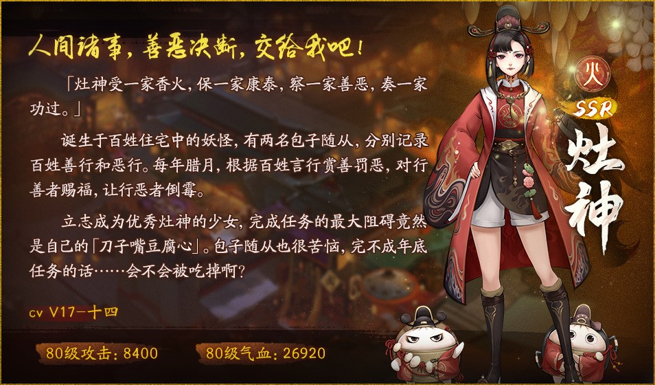 年关将至灶神忙,行走千家定福殃。网易新概念妖灵大作《神都夜行录》今日迎来腊八盛事,肩负考察一家善恶之责的灶神遇上了大难题,需要全体降妖师助她作出决断。全新SSR妖灵“灶神”和SR妖灵“百幻蝶”加入活动卡池,等待你的召唤! 2019年度中国游戏行业“金手指奖”新鲜出炉,《神都夜行录》荣获年度优秀手机游戏,尽展国韵巅峰的无穷魅力! 荣耀捧杯,福利喜迎腊月 上月,由中国文化娱乐行业协会主办的2019年度中国游戏行业“金手指奖”颁奖典礼盛大举行,《神都夜行录》被评为年度优秀手机游戏,又一次以重量级的奖项证明了自身的优良品质。 世情百态,善恶难以定夺 腊月里,不仅家家户户开始为除夕忙碌,灶神也开始四处奔忙,定夺千家万户一年来的功过是否。但繁华锦绣之下,总有错综复杂的人情世事,有一位灶神接连遭遇了洛阳城内的复杂事件,她难以轻易做出决断,因此邀请降妖师们担任“代理灶神”,助她作出最正确的判断。 在“正是人间祭灶时”腊八活动中,降妖师们将先后经历6起大小案件,在做出自己的善恶判定后,需通过战斗收集“意愿签”,提升己方观点的说服力,以影响灶神的最终判断。事件截止后,降妖师们将根据积累的意愿获得不同档位的基础谢礼,善恶判定得到灶神采纳的降妖师还将获得额外谢礼。本次活动中,无论降妖师的意见是否得到采纳,只要积极参与挑战,完成超凡通关任务,收集到足够的意愿签及幻鳞粉,均可获得足量灶神碎片,免费获得一个灶神! 挑战副本时,降妖师需在前一级副本中得到超凡等级方能解锁下一级副本,挑战性更强;每日前五次副本战斗不会消耗体力,更好积累意愿签;战斗时可获得幻鳞粉,能用于兑换“灶神碎片礼包”、“幽都神藏”等珍贵奖励!参与本次活动时,降妖师还可派遣灶神或百幻蝶出战,获得伤害、攻击或掉落加成! 人间诸事,朝天言禀功过 “正是人间祭灶时”腊八活动开启同时,全新SSR妖灵“灶神”和SR妖灵“百幻蝶”也将携手加入活动卡池,等待降妖师们的召唤! 前者是记录百姓善恶,给予赏罚的宅中妖怪,后者是形态多变,蝶翼绮丽的南海蝴蝶,两位全新妖灵将以自己的方式,与降妖师一起,欣赏神都风光,迎战万千强敌!卡池中,还有限定活动拓印“灶暖人间”、“善恶分明”和“朝天言事”等你抽取,为出阵妖灵携带这些拓印将提升活动中的商店材料掉落。 本次活动卡池将延续置换非概率提升SSR妖灵的福利功能,降妖师如果在卡池内抽中了非概率提升的SSR妖灵,可消耗一个太素晶核,将其置换为概率提升的SSR妖灵,助你更快获得心仪的妖灵! 《神都夜行录》也为降妖师们准备了丰厚的福利——截止1月16日14时,12级以上的降妖师累计签到十天即可领取全部丰厚奖励;“正是人间祭灶时”活动每日特供礼包任你选购,唤灵符、灶神碎片礼包等道具等你开启;两千万登录特供礼包第四期惊喜上架,截止1月9日14时,超值礼包切勿错过! 与此同时,降妖师们十分关注的“妖灵弈”玩法将全周开启先行1.5版本,全新上线的鏖战模式将为降妖师们带来更激烈和更富策略性的对弈体验! 网易新概念妖灵大作《神都夜行录》腊八活动今日正式开启,快来协助灶神,定夺人间善恶! 【神都夜行录】 国韵之美,归于盛唐。网易新概念妖灵手游《神都夜行录》是一款国风妖怪收集RPG手游!在游戏中,你可以奇遇万千妖灵,体验绝美百妖剧情!盛世大唐,国韵美学,让你亲历神都风志!每有妖物作乱之日,便是降妖师现身之时,让我们一起走进国风妖怪的世界! |