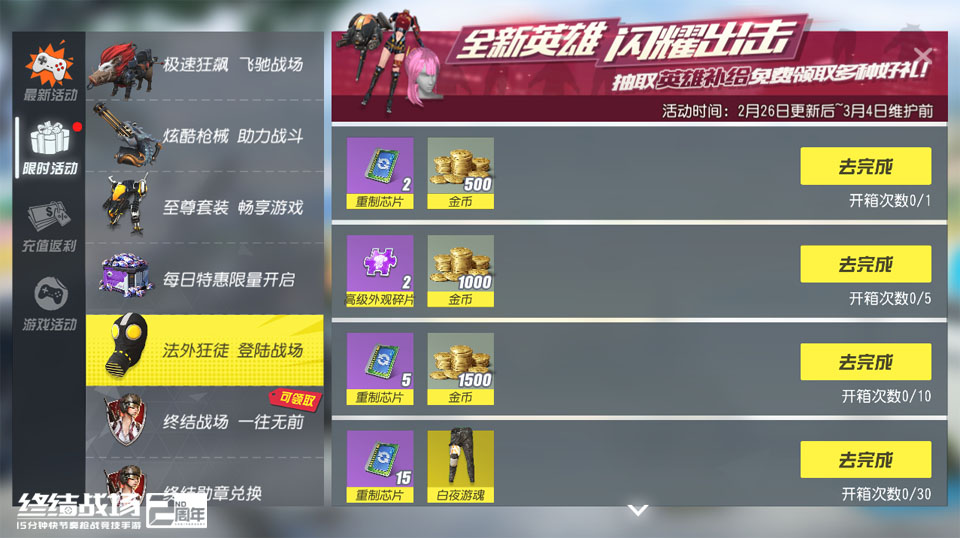 将战场视为猎场,让邪恶无所遁形!网易快节奏开黑枪战竞技手游《终结战场》2月26日重磅更新,全新英雄“法外狂徒”震撼登场,海量福利活动同步开启,全服“努力”点燃开工激情! 悍勇无双 法外狂徒“疯战”更刺激 被称为战斗疯子的法外狂徒,以“悍不畏死”与“亡命之徒”两大技能闻名战场。作为一名进攻型英雄,法外狂徒能够凭借“悍不畏死”大幅缩短复活时间,使自己迅速回归战场,虽然复活后会受到易伤效果的影响,但只要能够击败敌人即可驱散易伤效果,并获得额外的速度增益;而当法外狂徒开启“亡命之徒”后将进入歇斯底里状态,行动速度大幅提升的同时也会带有易伤效果。 除了新英雄的降临外,本周《终结战场》还迎来了更多优化调整及新道具的加入,寻宝奇兵模式增加了新遗物“聚合针剂”,玩家可以通过宝箱或者空投商店中获取,它可以提升冷兵器的挥砍速度,让进攻更有效率。 本周更新后,备受欢迎的随身载具“狂暴野猪”可搭乘双人了,而随身载具仓库也将重新划分,分为单人随身载具,双人随身载具,随身坐骑和多人随身载具四种类型,玩家装备使用更方便。 春风送暖 开工努力活动有惊喜 结束了居家“战疫”,《终结战场》为马上要投入复工大潮的玩家准备了丰厚的福利礼包——“新春到努力活动”火热开启。玩家每完成一项活动任务都可以积累个人“努力值”,全服玩家的“努力值”将共同助力奖励解锁。 在活动中拿下“努力第一名”的玩家还可以获得限时代币“努力第一名”, 限时代币“努力第一名”可用于购买特供商品。特供商品中不仅包含超豪华跑车皮肤“华影EX-改”,更有小巧精致的“浪漫小绵羊”,童话风的“圣诞马车”,深受二次元喜爱的“龙猫伞面”,以及风格迥异华美同步的“暗夜玫瑰”与“晨曦鹿鸣”套装等限量绝版精品。 至尊补给“爆裂”上架 白夜游魂助力新英雄 本周至尊补给尽显机甲设计魅力,抽取即有机会获得pp19武器外观“金色爆裂”、武装吉普外观“爆裂-I”、弹跳机器人外观“武装猎手”以及男性人物外观“邪恶猎人”,组装自己的全机甲战士,其中“爆裂-I”还可以在工坊中升级为爆裂战车。 在至尊补给限时活动中,抽取至尊补给一定次数可以直接兑换以上外观及其他游戏内道具奖励。 而在本周的时装补给上新活动中,《终结战场》为新英雄法外狂徒准备了“白夜游魂”套装,玩家只需集齐该套外观即可解锁法外狂徒。玩家也可以通过抽取一定次数的时装补给获得“白夜游魂”以及其他游戏内道具奖励。 《终结战场》本周版本更新后,限免英雄阵容将更换为战场指挥官、终结猎手、灵鸦侍者、火箭骑士。全新英雄法外狂徒助阵战场竞技,更多玩法打造极致开黑体验,春季开工月一起来嗨! 关于《终结战场》 英雄归来,终结战场!2周年全新英雄模式刺激开战!彗星巨炮、特工潜行,召唤空投,任选秘宝,给你超酷超燃的对决体验!春节活动多重惊喜齐发,极致畅爽体验! |