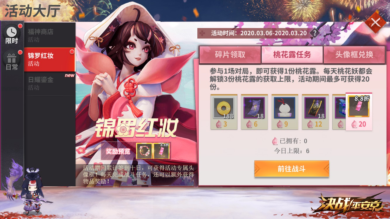 万物一新,绿柳红妆。春日的暖阳,总会把周围映衬得更有生趣,而每到这个时节,平安京的世界里,总是前呼后拥着许许多多爱美的崽崽。她们迫不及待地早已换上娇艳欲滴的新装,用满满的活力迎接着春天带来的好运。今日,《决战!平安京》正式开启“锦罗红妆”、“福神商店”专属活动,为大人们带去春日的暖意。 换上华美的新装 锦罗红妆春日活动开启 春织锦罗,早理红妆。在一年中最美的时光里,大人们总希望换上华美的服装,点缀上精致的妆容。3月6日游戏维护后-3月20日活动期间,《决战!平安京》每天都将为阴阳师大人们准备3个桃花露任务,大人们完成对战即可获得专属道具[桃花露],获取足够多的[桃花露]后,即可领取包含[女性式神折扣券]等在内的丰厚奖励。累计在活动界面签到10天,还可免费领取[锦罗红妆]专属头像框。 好运到福气来 福神商店限时回归 春日活动期间,集好运、福气于一身的福神也将降临平安京的世界。3月6日游戏维护后-3月12日,《决战!平安京》将为阴阳师大人们限时开放专属[福神商店]。活动期间,大人们将有机会前往福神商店,抽取属于您的专属折扣! 在春日最美的时光里,《决战!平安京》也为大人们准备了“锦罗红妆”、“福神商店”两大专属活动,为大人们送上心意满满的福利。后续,游戏还将陆续为大人们带来更多专属福利活动,更多精彩内容,更全活动预告,请关注《决战!平安京》官方网站、官方微信、官方微博。 【关于《决战!平安京》】 《决战!平安京》是一款全球无符文对称MOBA手游,秉承 5V5公平竞技理念,告别符文系统,实现了地图镜像对称、战斗数值均衡,真正绿色公平对战;继承网易重磅IP《阴阳师》,和风画面细腻唯美、人气式神接连登场、顶级声优鼎力加持;独特有趣的技能设定和自由搭配的“阴阳术”,带来更多的技能组合和战术变化,为玩家带来全面革新的MOBA手游体验! |