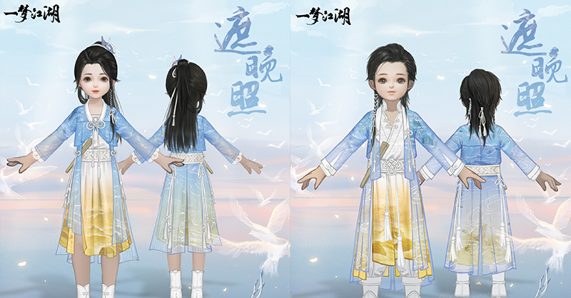 在《一梦江湖》的拟真江湖中,玩家可以在如画江山中自由穿行,欣赏无限风光。天机阁纵览江山,研习古画,从《千里江山图》提取各色元素,最终制得全新主题时装“颂绘集”,同时还运用山水元素设计了时装“遮晚照”。 【画卷裁衣“颂绘集”】 时装“颂绘集”最主要的吸睛元素便是衣身和裙摆下的《千里江山图》元素,大好山河在衣襟间延展,令人感受到胸襟广阔,山河壮丽。除了《千里江山图》的元素,这件衣服的外衬上还使用了白色纱质材料,在上衣刺绣青鸟,白纱轻拢外身,层次迭进,体现了主人的内涵和深度。 少女款飘逸的发髻高高束起,碧玉发簪斜插其中,轻快活泼,乖巧玲珑。还有个别有匠心之处在于,该款式所有体型服饰的腰间都别了两只轻巧的绘笔,愿仿古人寻访河山,绘就传世名作。 【山川绘裙“遮晚照”】 沾过了山川地气后,自然也要看看浩渺青空。倘若“颂绘集”里包含的是万水千山的豪情写意,那这套“遮晚照”时装就是云雾弥漫的出尘意境了。 “遮晚照”时装通体采用淡蓝配色,云纹外衫轻薄飘逸,仙气盎然。内衬下摆山川耸立,点缀道道祥云,远远望去宛若仙人畅游于天地之间,潇洒自在,飘逸出尘。 在衣身背部精细的刺绣图案,绘制了青雀漫天飞舞的情景,云雾缥缈间,清冷气质油然而生。少女的时装则更为可爱,洁白花袖迎风摇曳,一揪发辫自然垂下,也是一位可爱的小公主呢~ 这两款取自山水之间的精美服饰,将随《一梦江湖》立夏活动上架,届时少侠们记得来云锦楼捧场哦。 |