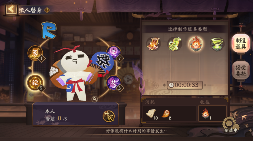 百鬼夜行热闹正当时,万事屋也已开张,不知各位阴阳师都运营得怎么样了呢?寮办本次特意邀请@yys靠脸混饭 为大家带来培训秘籍,想让小纸人们快速上岗的阴阳师快来查收这份攻略吧! (以下攻略仅代表玩家观点,欢迎大家交流讨论) Hello大家好,我是饭饭,很高兴能给各位阴阳师带来这次万事屋的活动攻略! 【活动简介】 万事屋是一个放置型的玩法,阴阳师大人们可以设置小纸人为您打工,通过打工产出的万事屋资金来换取商店奖励。本次活动需要战斗的场景较少,是一个对萌新非常友好的活动。 这次活动的奖励较为丰厚,包括神秘的符咒,勾玉,御行达摩,ssr/sp式神召唤券,活动专属头像框,久次良皮肤等等。 首先介绍一下活动流程。阴阳师们可以从庭院小纸人进入活动。 进入后可以选择自己的活动形象,这个形象可以展示给好友看哦! 形象设计完成之后,可以看到自己小纸人的属性点分配,基础是20点。属性分为制符速度,绘阵速度和部分委托收益。 另外,如果阴阳师拥有下图中的这些头像框/皮肤,每个可以增加一点总属性。 最后点击多多指教,就可以进入万事屋界面啦。 点击左上角的万事屋图标,可以看到万事屋目前的等级,以及当前等级下纸人替身数,事件格子数,和每日调查次数上限。这些权益可以通过提升万事屋的等级来提升,此外提升万事屋等级还可以解锁商店部分稀有奖励。 【配置小纸人】 从主界面点击“配置”,即可进入小纸人配置界面。在这个界面中可以给自己的小纸人安排任务。 右边是当前人员,左边是库存信息和目前人员配置下的预期收益。我们可以通过点人员空栏处的加号进行召唤。点击加号后进入如下界面。 点击招募后,可以召唤出新的小纸人。 可以看到,SSR的小纸人的总属性点比R的小纸人多出不少。大家在有多的小纸人招聘文书时可以解雇当前的R卡或者SR卡小纸人,尝试召唤SSR级别的小纸人。 小纸人一共有4种属性:灵、技、篆、绘。每种属性都有对应的工作,属性旁边的数字越高意味着小纸人进行对应的工作效率越高。点击各个属性就可以查看对应的工作,建议是选择纸人较高的属性对应的工作。 比如这个纸人是绘制9级,那就设置制造火结界或者风结界,效率会更高一些。 完成特殊事件可能会掉落工作心得,点击小纸人下方的升级,可以消耗工作心得,随机提升小纸人的某一个属性。 【活动资源系统】 说到这里我们要介绍一下这个玩法的资源系统。系统资源分为:自动获取资源,道具,和万事屋资金。 自动获取资源包括:墨,纸,火鬼玉,风鬼玉,水鬼玉,雷鬼玉。可以随事件自动获取,也可以通过调查玩法获取,后两种资源在万事屋达到2级后开启。 道具包括:火灵符,风灵符,火结界,风结界,水灵符,雷灵符,水结界和雷结界。后4种道具在万事屋达到2级后开启。需要通过设置小纸人制造道具获取。 我们可以通过设置小纸人工作,利用自动获取的资源去制作道具。再通过设置接受委托,利用制作的道具来完成委托,换取万事屋资金。最后使用万事屋资金来换取商店奖励。 【小纸人任务安排】 我们可以通过点击右边齿轮来进行设置小纸人的工作,也是本次活动的核心玩法。 初期建议大家可以选择做唤火初阶,刷新速度快,给的经验也比较多,适合前期升万事屋等级。后期大家可以选择一些高阶的工作,比如3级的召雷,给的万事屋资金比较多。 另外,小纸人在材料不够或者事件数满了的情况下会停止工作。大家在选择小纸人工作的时候需要考虑目前的资源平衡以及自己的作息时间。不同的任务需要完成的时间也不同。比如2阶的唤火,需要11分15秒完成,而二阶的召雷,需要1个小时2分钟30秒完成。 具体怎么进行收益最高的设置需要根据大人们的当前资源,纸人等级,和作息时间来定,没有固定的最优设置方法,但是也不难理解,我下面来给大家举个例子。 比如我现在可以保持长时间在线,并且火灵符和火结界都已经到达上限值,那我就可以选择灵力属性比较高的小纸人做唤火3级的委托,这样可以不浪费材料。 此外,我们目前库存里的雷灵符比较少,我打算在晚上睡觉前设置召雷3级的任务,那现在的库存材料不够,我们就可以设置篆书属性较高的小纸人来进行雷灵符的制作。 等到晚上睡觉前,将会长时间无法上游戏,这个时候再设置技艺属性较高的小纸人进行召雷3级委托。 概括来说,就是大家可以先根据自己上游戏的频率来决定做耗时少还是耗时多的委托。 确定了委托以后看委托需要的材料库存。如果库存不够的话可以设置制作等级比较高的小纸人来制作道具。 委托完成后需要进入“事件”界面领取,每一个委托都会占用一格事件的格子,而事件格子是有上限的,到达上限后小纸人将无法继续完成委托。 另外材料耗尽小纸人也会停止工作,其实大人们并不用特别在意挂机中小纸人中断工作,只要确保在休息期间素材不要因溢出上限而浪费就可以了!因为素材的总量是有限的,目标是利用小纸人的属性和突发状况,最大化资金获取! 【调查玩法】 库存资源除了通过时间增加,我们也可以通过调查玩法来获取。调查玩法可以选择普通或者精英难度,普通难度消耗6点体力。一开始每天最多能调查30次,这个次数会随着万事屋等级的提升而增加。普通调查模式比较好打,用一个普通双输出阵容即可。 万事屋3级后会开启精英类型,调查精英难度可以