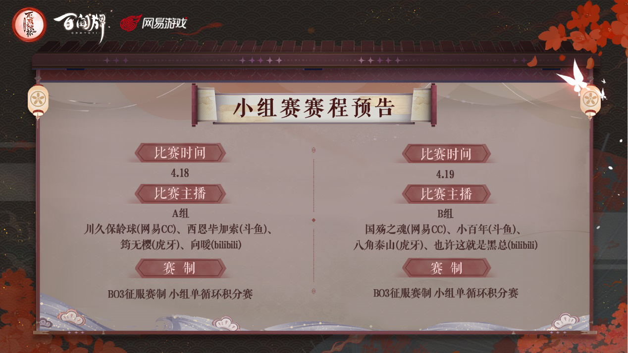 浴火而战,谁人涅槃,4月18日16:00 ,“不夜之火杯”主播对抗赛首战正式打响!由《阴阳师:百闻牌》官方举办,来自四大平台的16名实力牌手将在蜃气楼中展开激烈角逐,谁将取得比赛的开门红,四大平台究竟谁更胜一筹?让我们共同期待牌手们于蜃气楼展开的巅峰较量! 群星汇聚,为荣耀而战! “不夜之火杯” 主播对抗赛首周的比赛将于4月18日-19日每天16:00展开,来自网易CC、bilibili、斗鱼直播与虎牙直播四大平台的16位主播将被随机分成四组,通过BO3征服赛制的小组单循环积分赛累计相应积分。 小组赛将进行为期2周共14天的对抗,根据最终积分情况将16位主播分为胜者组与败者组,进行淘汰赛的比拼。谁能一路高歌猛进,在小组赛先下一城,取得优势,让我们拭目以待! 本周末比赛中将有2组共8名主播参赛,对阵分组如下(排名不分先后): A组:川久保玲球、西恩毕加索、筠无樱、向暖 B组:国殇之魂、小百年、八角泰山、也许这就是黑总 他们之中既有实力强劲的人气主播,也有深耕百闻牌打法攻略硬核玩家,名士之争,谁人更胜一筹?让我们一同见证他们的精彩表现! 实力解说,比赛动态全程分析 在上演巅峰牌技对决的同时,也有豪华解说阵容助力比赛。首周小组赛将由曾登顶体验服的技术流大神“不堪七”与人气直播“高大萌”担任解说,深入分析牌局,为你带来不一样的观赛体验,一同见证比赛中的精彩操作! 丰厚奖金,神秘礼物等你来拿 本次赛事为参赛选手设立了丰厚的赛事奖励,冠军选手将获得50,000元奖金,亚军获得30,000元奖金,季军获得20,000元奖金,殿军获得10,000元奖金,而5至8名也将获得5,000元奖金! 不仅如此,赛事期间也为玩家准备了神秘礼物,关注“阴阳师百闻牌赛事”微博,奖励等你来拿! 本次“不夜之火杯”主播对抗赛将在各大平台同步直播,每个周末都将进行百闻牌最顶尖的选手博弈!更多的式神搭配、游戏理解、节奏掌控尽在赛事之中!《阴阳师:百闻牌》“不夜之火杯”主播对抗赛期待你的关注与参与。观众可于比赛日当天前往网易CC直播、bilibili、斗鱼直播、虎牙直播、优酷游戏、爱奇艺直播等直播平台观看比赛,更多赛事相关咨询详见游戏官网(http://ssr.163.com/)。 关于《阴阳师:百闻牌》 《阴阳师:百闻牌》延续了“阴阳师”原IP的世界观、美学基础和声优阵容。游戏邀请逾百位顶级画师,匠心绘制精美卡牌,不仅经典式神拥有全新原画,效果卡也都有着独立的设计与风格。同时,《阴阳师:百闻牌》邀请原班声优为式神倾情献声,钉宫理惠、水树奈奈、绿川光等大牌声优皆在其中。美到不可方物的动态立绘,豪华声优阵容倾力加盟,为玩家的视听体验带来一本满足。 |