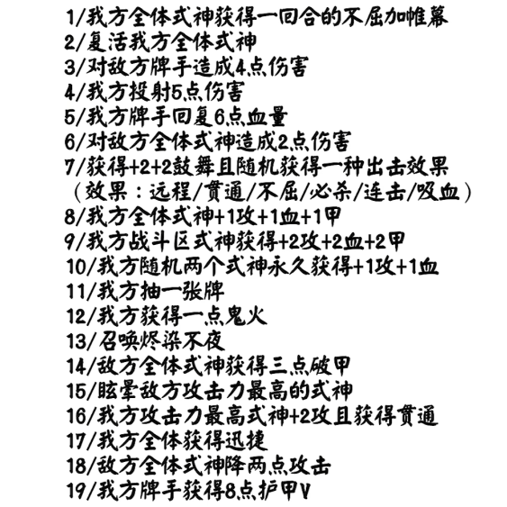本期《百闻小课堂》为大家介绍的式神是不知火。在发挥她强大的鼓舞能力时,我们需要注意哪些事情呢?一起来看视频学习一下吧~ 视频来源:狸猫会成员 @一波啊丶 ▼ 课堂小笔记 式神定位 不知火的定位是鼓舞型辅助。不知火的基础能力配合形态卡可以让我们的式神附加鼓舞后打出不俗的伤害,更加容易获得场面优势。她的SSR卡牌惊鸿之舞的随机效果能够在后期给我们带来意想不到的收获。 上手难度 不知火的上手难度并不高,合理理解不知火的卡牌我们即可轻松上手。唯一的难点在于如何保护生命值不高的不知火,而把握好使用鼓舞时机是玩好不知火的关键。 使用要点 1.离殇之舞可以让鼓舞效果不随使用而消失,但是要小心日出有曜能够清空积攒的鼓舞效果。 2.前中期不要贪恋留存鼓舞效果去等待离殇之舞或者星火之歌,前期要合理利用鼓舞效果处理场面。 3.作为SSR惊鸿之舞的部分效果极其强大,但随机性较高,不要太过于依靠惊鸿之舞来翻盘。 4.使用觉醒·不知火后再使用勇气之光即可直接受到增益。 5. 烬染不夜入场也会触发闪烁。 6.惊鸿之舞的所有效果如下: 7.白狼的基础能力、鸦天狗的投射伤害、山童的贯通伤害等出击效果对牌手造成伤害都会触发初会之舞的效果。 8.烬染不夜出击会触发妖刀姬见切,但是妖刀姬无法免疫该次伤害。(因为烬染不夜的目标是随机的,并不指定战斗区式神) 卡组思路 通过上面简单的定位分析,以及我们前几期的讲述。可以得出如下不知火的一些构筑思路。 鼓舞养核流 我们可以通过不知火搭配一目连、萤草、桃花妖等可以提供鼓舞效果的式神,来放大不知火觉醒的效果。 鼓舞流养的核心可以有:鸦天狗、白狼、山童、小鹿男等。下面推荐给大家一些卡组参考: 知鸦花目 阵容码: MTAxXzM3NjgzMjFfMTU4NTQ5MTA2MHx6eAI9Ej32PP48ogyKDI4MngxBHCYcLhwyHDUcxWjKaM1o0mi6aA== 知狼花目 阵容码: MTAxXzM3NjgzMjFfMTU4NzE0Njg1Nnx6eKIMigyODJ4MQRwmHC4cMhw1HMEPqg+uD7EPug9CacFo0mi6aL1o 知山花目 阵容码: MTAxXzM3NjgzMjFfMTU4NzE0Njg5MHx6eGIUZhRyFFoUogyKDI4MngxBHCYcLhwyHDUcQmnBaNJoumi9aA== 知犬花目 阵容码: MTAxXzM3NjgzMjFfMTU4NzE0NjgxNXx6eOIg5iD2INogogyKDI4MngxBHCYcLhwyHDUcQmnBaNJoumi9aA== 鼓舞快攻 第二条思路就是鼓舞快攻。我们通过初会之舞的过牌能力,提高快攻的手牌数量。如果你喜欢不知火又想玩快攻,可以试试这几套。 知狼刀山 阵容码: MTAxXzM3NjgzMjFfMTU4NzA1NTQxOXx6eGIUZhRyFFoUoQGlAZYBmgGeAcIPqg+uD7oPwmhBadJoumi9aA== 知狼山目 阵容码: MTAxXzM3NjgzMjFfMTU4NzA1NjQyMHx6eGIUZhRyFFoUwg+qD64Pug9CHCYcLhwyHMJoQWnSaLpovWg= 知狼鸦山 阵容码: MTAxXzM3NjgzMjFfMTU4NzA1NjQ1OXx6eGIUZhRyFFoUAj0KPfY8+Tz9PMIPqg+uD7oPwmhBadJoumi9aA== |