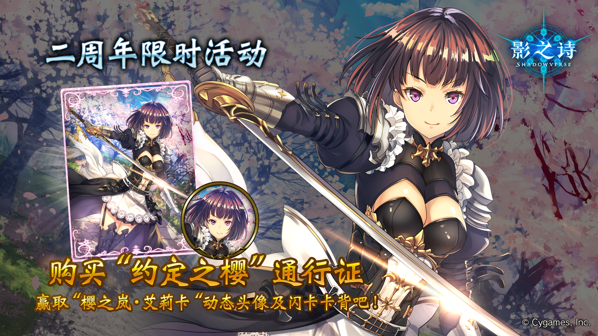 暗影新生,一路前行,由日本著名游戏厂商Cygames公司开发,网易游戏代理的日式幻想题材公平竞技卡牌手游《影之诗》,于4月26日正式开启二周年活动,为了感谢玩家两年以来的支持,周年庆期间登录即送50卡包+传说卡包,还有海量的游戏奖励等你来拿! 欢度二周年,登录奖励送不停 为庆祝《影之诗》国服全平台公测两周年,玩家在活动期间登录游戏即可在邮箱中领取传说级卡包一个,打开传说级卡包必定可以获得一张珍贵的虹卡!此外,游戏还将举办二周年纪念登录活动,在活动期间登录游戏,每天都可以获得指定系列(钢铁的反叛者、荣耀再临、森罗咆哮、极斗之巅、那塔拉的崩坏)的卡包5个,登录满10天共可以获得50个卡包!如此丰厚的奖励,记得登录领取! 二周年限定!樱花活动限时举行中 正值樱花季,《影之诗》的两位主战者亚里莎和艾莉卡也将来到游戏内与各位主战者共度二周年,参与二周年限定樱花活动即可获得两种动态卡背与头像,这也是《影之诗》首次推出动态头像!首先,购买月卡即可获得“樱之馨·亚里莎“动态头像及闪卡卡背! 此外,购买“约定之樱”通行证,并在游戏内进行对战,即可兑换“樱之岚·艾莉卡“动态头像及闪卡卡背! 如此丰富的奖励和活动内容,心动了吗?千万不要错过这次的二周年庆活动!《影之诗》衷心感谢您的支持,让我们向着灾厄之树,踏上征战暗影之路吧! |
