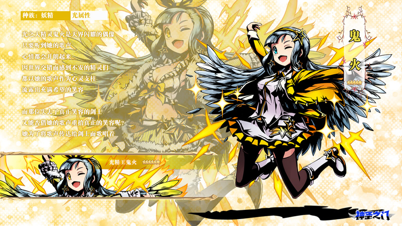 在《神圣之门》的世界中,角色们的战斗能力被划分为火、水、风、光、暗和无六种属性,而掌管着这六种元素之力的,正是生活在天界的妖精们。当那扇神秘的门扉开启,界域融合,美丽的妖精们也终于掀开神秘的面纱,与我们共同开启一段新的冒险之旅。 【强大蓬勃的火】 掌管着火的大精灵伊芙利特连身体都是由火焰形成的,世界的交错产生的纷乱,更令原本就性急的她变得更加暴躁,就在她的愤怒的火焰席卷一切的时候,人类少年赤音的出现改变了他,火的共鸣令她重生为火精王,她也决定用这份力量守护少年所深爱的世界。 【包容守候的水】 掌管着水的大精灵温蒂尼一直在海边等候着,等候着那命定的刀士——苍人的出现,使用水之力量的刀士与她的水系元素相遇,温柔的力量并未将一切洗涤而是全部包容,温蒂尼也得以重生为水精王,与苍人共同踏上未来的旅程。 【满怀期待的风】 希尔芙是掌管风的大精灵,她也如风一般在天界肆意的游走着,当翠掀起的新风与她相遇时,她的内心充满了雀跃。希尔芙收下翠为自己的弟子,两人共赴终年海峰呼啸的极高仙境,在那里她们完成了新的试炼,希尔芙成为了风精王,以自身之力掀起龙卷风,将自己的弟子送入了新的时代。 【闪耀喜悦的光】 光之大精灵鬼火是天界闪耀的偶像,因纷乱而不安的精灵们都从她的歌声中找寻到了希望,获得了快乐,而那位丢失了自己的本心的剑士——光,也在她的帮助下重拾笑容,二人的力量碰撞出了新的光芒,鬼火也获得了新生成为了光精王。 【温柔深沉的暗】 因曾堕落魔界而获得暗之力的大精灵阴影,比任何人都了解何为悲伤,因此希望能够为所有人都带来可以安稳入睡的夜晚。她为了治愈了被黑暗笼罩的少女,不惜再次堕入魔界重生为暗精王,用温柔的暗之力为少女营造出了一个甜美的梦乡。 【不再迷茫的无】 “我究竟为何而生,生来和意?”这个问题一直困扰着掌管无的大精灵零,银次的造访打破了这一谜团,他们共同前往地底乡,在一片虚无中零领悟到“没错,自己的诞生是没有意义的”,眼前的空白便是她要选择的未来,重生为无精王的她不再是任何人,并与能够成为任何人的少年,决定共同前往审判之日。 |