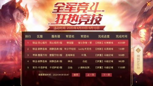 4月2日至5月10日期间,等级≥70 级的军团长可持竞斗之证于 “全军竞斗” 界面带领军团进入【绝域试炼】进行推图挑战。 推图难度分为1-9级,根据各大军团挑战的难度和挑战时间进行全球狂热竞斗榜排名。挑战难度越高,通关的时间越短,排名越靠前。 位列榜单前10的军团,每位军团成员都可以获得 15000-2000 的军团功勋奖励! 你是不是以为奖励只有这些?当然不是! 荣登全球狂热竞斗榜前10的军团长,可额外获得神耀入场券。使用神耀入场券可挑战神耀战王,击败神耀战王后,有机会掉落全新幻魂 “流连忘返自选箱”,精美发型 “花舞漫天”、“碧海挽月”,稀有幻兽“光冥玄武自选箱”,珍品头像“蓝晶星耀” 等等臻品道具! 只有军团长的奖励吗?当然不是!既然是全军竞斗自然人人都有奖! 活动设置了狂热竞斗榜,军团成员通过参与“战神的考验”、骨龙试炼、秘晶宝库、军团狩猎站、军团荣耀、进击的鹿角兽等 “全军竞斗” 系列活动收集纹章。 通过提交的纹章数量进行狂热竞斗榜排名。排名越靠前奖励越丰富! 5月狂欢特权 4月30日10:00至5月15日23:59期间,只需要花费510点魔石激活五一狂欢特权,就可以存储 5 月 1 日 00:00 至 5 月 7 日 23:59 期间没有使用的神火古域挑战次数。 5月7日10:00 至5月23 日23:59期间,通关森罗、梦魇、炼狱级的熔火圣殿、黑水幽岛或雷炎禁地时,会额外消耗1次所储存的神火古域挑战次数,并获取额外奖励。 每天最多限消耗2次所储存的神火古域挑战次数。 狂欢寻宝 4月30日10:00-5月15日23:59期间,玩家登录游戏即可获得1份邮件派送的狂欢寻宝箱。 5月9日10:00,狂欢寻宝正式开启!打开狂欢寻宝箱可随机获得不同级别的寻宝图。完成寻宝探险,即可收获探险徽章。 |