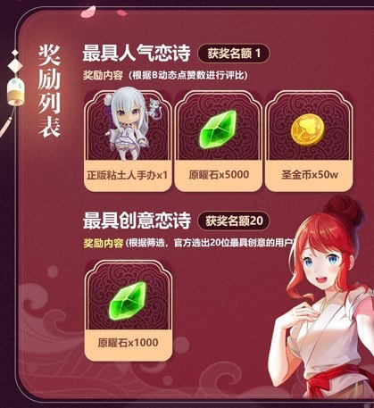 在这个浪漫的5月里,《Re:Zero-INFINITY》手游中迎来了全新的「剑鬼恋诗~花之繁盛物语~」活动。在游戏里与特蕾希雅和威尔海姆一起,让破败的彼华馆重燃生机,通过活动关卡累计积分,即可兑换大量游戏道具。 同时,自5月6日起,我们在B站、TapTap和贴吧三个平台发起了【异世界专属恋诗】H5活动。在B站、TapTap或贴吧晒出自己专属恋诗的图片,并写下你这段特殊的异世界经历的感想,即可参与活动。 本次H5活动在三个平台均设立了多个奖项,获奖的骑士们可以获得爱蜜莉雅正版粘土人手办、原曜石和圣金币等奖励。除了平台奖励之外,参与本次H5活动的所有骑士均可获得圣金币和玛那瓶礼包,并有机会冲击包含正版手办、Airpods Pro耳机、限定台历、明信片和限定文件夹的终极大奖! 铭刻恋诗H5活动将于5月13日晚上23:59正式结束,当前骑士们参与热情非常高,涌现了多个优秀作品。希望大家能够再接再厉,在活动进入尾声的时刻依然继续冲刺。大奖就在前方,有梦就有希望! 更多优秀的作品骑士们可以移步B站、TapTap或贴吧查看并进行点赞互动。《Re:Zero-INFINITY》手游将持续为大家带来更多优秀的活动,各位,请继续期待吧! |