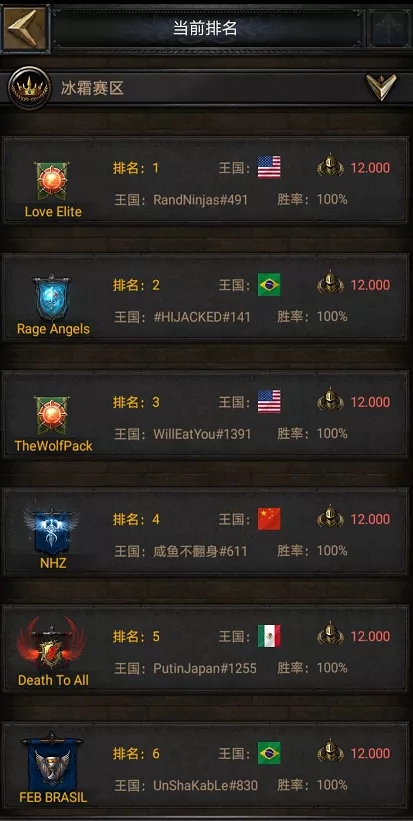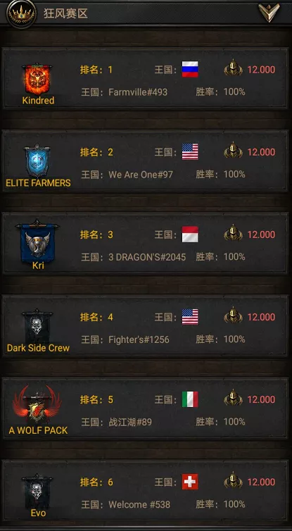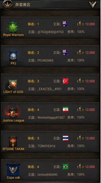 公平竞技,策略至上,无限世界我为王。不知不觉中,《cok》S3世界杯小组赛已经开始两周了!四轮的征战,各位领主大大肯定对S3世界杯的优化以及玩法有了新的认识和掌握,现在各个联盟想必也研究出了属于自己的“上分套路”。赛程已经进入深层次的较量,“热身期”已经彻底过去了,接下来才是真正激烈的角逐! S3世界杯赛制:总计16轮小组赛,根据积分制;胜积3分,平积2分,负积1分,在完成16轮比赛后决出赛区前8。各大赛区前8名的联盟进行单轮淘汰赛,决出赛区冠军。一周休赛期后,四大赛区的赛区冠军通过单轮淘汰赛决出全球总冠军! 赛区冠军可获得$10000,全球总亚军可获得$10000,以及全球总冠军的奖金为$20000!! 究竟鹿死谁手,现金大奖花落谁家!现在一切都还是未知,谱写华丽篇章的笔还握在你的手中,每个人都有机会!梦想,荣誉,奖金,我全都要! 快来看看第四轮比赛结束后,各赛区前8联盟都有谁吧!(积分相同的情况下,会按照比赛分差决定排名) 烈焰赛区 冰霜赛区 狂风赛区 奔雷赛区 四大赛区前八,国盟只占五席。主打的烈焰赛区也只占有了半壁江山。各大联盟是否正在积累经验,准备厚积薄发?剧情的走向如何,让我们拭目以待! |