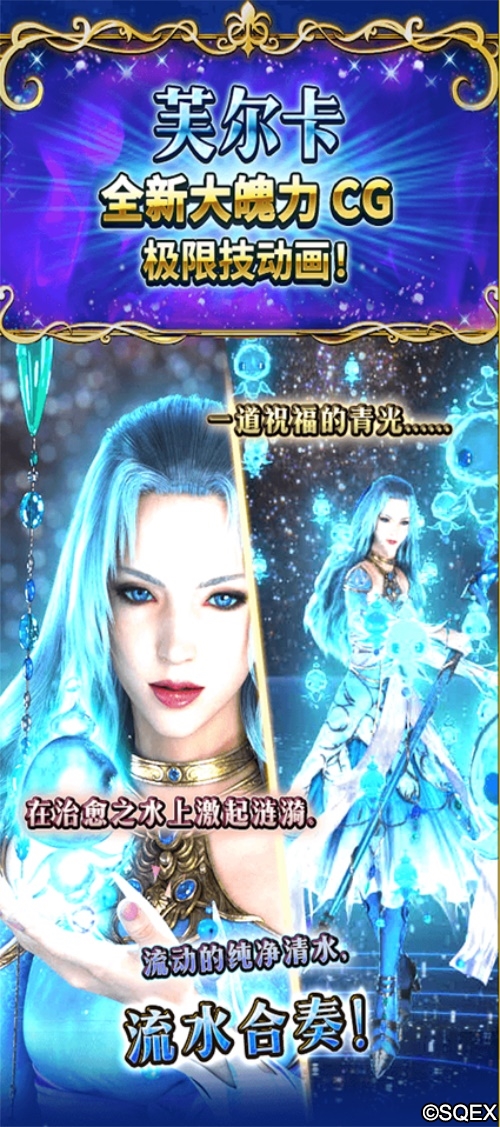 帕拉迪亚八盟杰之一的「芙尔卡」,温柔强大的她,却有着令人意外的一面。 她着迷于尼克尔的帅气,还很容易弄丢钱包…… “我不想失去我们之间的羁绊,或是我的钱包。显然,还是羁绊更重要一些!” 5月21日,「芙尔卡」特别召唤即将开启,届时FFBE国服将开放一些列相关活动内容,就让我们一起来看看吧。 水镜巫女的剧情活动将配合更新同步上线,除了在游戏中体验到关于初代水之巫女的各项奇妙故事外,完成活动后还可以获得一张五星自选召唤券。 活动期间,稀有的CG兵员芙尔卡开放召唤。作为水镜巫女的芙尔卡拥有着强大的回复能力,能够回蓝,回血以及复活技能,还在减伤方面有着很深的造诣。配合着唯美的CG,一定会成为您队伍中的主力治疗角色。 值得一提的是,芙尔卡的CV是花泽香菜小姐。著名的萌系声线+豪华绚丽的CG特效究竟会碰撞出怎样奇妙的化合反应,请各位队长敬请期待。 除了超好看的CG兵员外,FFBE国服本周还会开放其他的强力七星兵员。 极光弗雷比亚: 亮点:光元素能力的代表角色,拥有T能力(三次能力),并且掌握了四种连锁攻击组的强力输出兵员,装备信赖【弗雷比亚服】后,第一回合即可释放T能力,使用技能闪光?强烈光辉后,可达到3600%的伤害。超级信赖【黎明】可大幅度提高极光弗雷比亚的攻击与魔力。 米菈: 亮点:作为偶像的米菈,拥有着多种恢复与屏障能力,除此之外,还拥有增加BUFF与降低敌方属性的能力,是一位不可多得的恢复与支援角色。 活动期间,这些稀有兵员的出现几率将会提升,幻兵队长们赶快召唤他们加入冒险队伍吧!玩家们限定召唤3轮,每轮可召唤5次,每1次召唤玩家们都会获得指定的稀有奖励: 当然,以上这些精选兵员的保底商店也都会正常开放中。各位队长们可以通过交换直接获得活动兵员。 限时活动-烟火巡礼活动 烟火巡礼活动第二期限时进行中,第二期加大了福利的投放,参与活动获得道具可兑换稀有兵员卡瑞菈特。 |