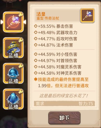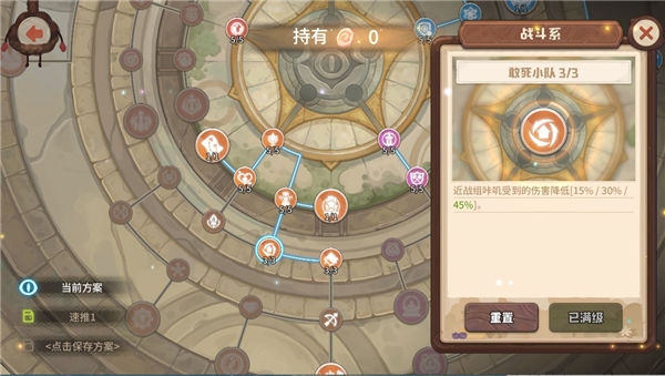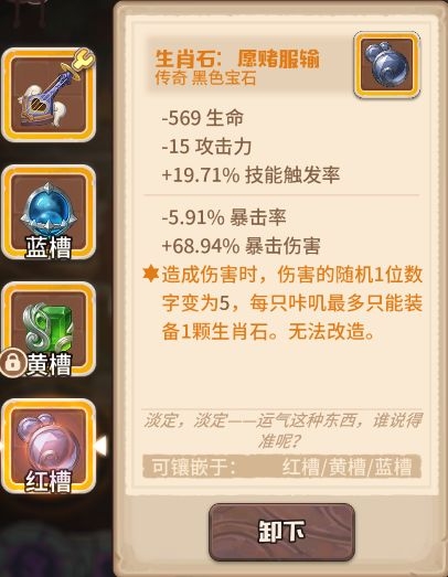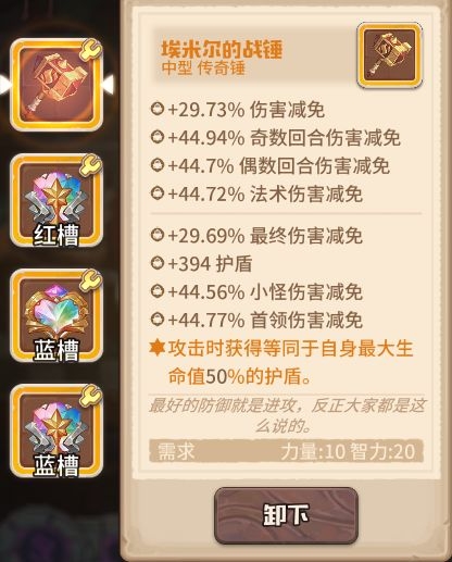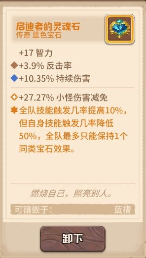 守护者封印如何点? 当前版本的主力输出仍然为远程组,因此封印点依旧以智力系为主。 可以适当舍弃天神系,用来点其他封印,可以考虑使用如下封印。 强壮体格可以最大化科学家的生命,提升刷图效率。 敢死小队为近战组提供伤害减免,暗杀小队为突袭组提供技能触发率,可提升队伍的生存能力(理由在下一点将详细讲解)。 2.如何生存? 在steam版本中速刷300层凭借强力的神石无需考虑生存问题,但无神石的手游版本无法在一两回合内秒杀怪物,因此需要将如何生存考虑进去。 Steam版本当前的主流生存套路为企鹅复制战术无限无敌,但手游版本无神石,前期暴君数量较少无法有效控制能量,且输出c位妮卡和科学家均无红槽,无法解决其他咔叽开战术的问题,因此最有效的生存办法还是靠米娅的无限不朽。 自己打造的灵魂使者最高可加15%的技能触发,配合特效强化的魔法之心与复制相邻传奇宝石特效的超自然宝石,以及高触发的黑生肖,再让其他咔叽携带启迪者的灵魂石,可将米娅的技能触发率堆至100%,每回合稳定开出不朽。 但需要注意的是,如果黑生肖扣除生命较多,可能会导致米娅在进入战斗时就处于死亡状态!图中米娅所带的-569生命的黑生肖,在我给武器和魔法之心都打上生命词条后才保证了米娅的存活,总共用了594+235+250=1079才将米娅从死亡线上拉回来,因此扣除生命较多的黑生肖是不建议大家使用的。 (米娅须达到一定熟练度,天赋点至技能强化) 该套配置的技能触发率上限为: 基础20%+武器15%+宝石共60%+其他咔叽辅助10%=105% 不朽改版后变为拥有不朽的咔叽受到致命伤害将正常死亡,死亡后再下回合开始以1血复活并清除不朽,因此队伍中还需要一只站得住脚的咔叽,这里推荐安迪。 技能强化后的安迪每回合护盾可保留至下一回合,并且在护盾存在时减伤效果提升150%,因此拥有极好的抗伤效果,配合埃米尔的战锤在每次攻击时可以获得等同于自身最大生命值50%的护盾,打上伤害减免的词条,基本上可以算是最肉的咔叽了。宝石选择增加生命的传奇宝石,配合武器的特效,这里选择了三个多彩宝石,词条打上生命和伤害减免,但需要注意其中一个多彩宝石应烙印上至少4点的智力。 下图为选择了训练场1000层传奇小鸡的战斗,成型的安迪可以硬抗1000层的萌新杀手——传奇小鸡的传奇三连斩,甚至连安迪的护盾都打不掉! 3.如何防止怪物的回血技能? 在挑战boss的过程中,经常会遇到boss回血的情况,结果因输出不够回合越多boss的血量反而越来越高,如何防止boss放出回血的技能,是我们在无神石版本需要考虑的一个问题。 (boss冰雪女王的回血技能) (boss火焰主宰的回血技能) (小怪龙翼蝙蝠的回血技能) 当前最稳定的控制咔叽当属卡布,技能强化后施放技能可直接令敌人冰冻一回合,将技能触发率堆至100%即可每回合稳定控制。 天赋自带20%的技能触发率,同时1级剑专精可以为剑系咔叽提供15%的技能触发率,因此相对米娅来说还是比较容易将技能触发率堆至100%的。搭配将技能触发率洗到较高数值的一把剑,带上触发率较高的黑生肖,以及队友携带启迪者的灵魂石,打造一只稳定放出控制技能的工具叽还是很容易的。但该技能为单体技能,无法做到群体控制,在挑战boss时可以全程控制,有较多小怪时仍需要靠米娅的不朽保证生存。 守护者封印未点暗杀小队的触发率上限:基础20%+武器20%+天赋20%+剑羁绊15%+黑生肖20%+ 其他咔叽辅助10%=105% 守护者封印点暗杀小队后的触发率上限: 105%+30%=135% 4.谁来输出? 当前版本的主要输出c位仍然为科学家和妮卡,配合酒保增加暴击和暴击伤害的干杯战术,有着不俗的输出。 科学家:破壁的携带需要咔叽拥有77点智力,无神石可考虑用蓝宝石堆智力,当然在拥有10级蓝宝石之前也可将其中一个换为烙印智力的至上魔法石,拥有10级蓝宝石后可换为17智力且特效强化的至上魔法石,黄槽可以装备高等级的多彩宝石或较好的黑生肖。 妮卡:拥有400%攻击力的起手技的妮卡,是绝对的输出c位。武器推荐携带法皇,高层后无法一回合秒杀怪物因此宝石必带特效强化的能量魔核,将需要吟唱一回合的技能变为瞬发。常用的宝石有三套搭配: 法皇的特效和禁锢深渊石提的特效有极高的契合度,装备魔法之心以提高技能触发率避免妮卡在因技能触发率过低而经常站桩。 2.双魔法之心+能量魔核 双魔法之心提升妮卡的技能触发率,使妮卡更容易打出技能,强化妮卡的输出能力。 3.黑生肖+魔法之心+能量魔核 极品的黑生肖可提供较高的攻击力、技能触发率、暴击率以及暴击伤害,同时9特效可以将100w伤害有一定几率变为900w伤害,但极品的黑生肖可遇不可求=。= 福斯:辅助咔叽,携带女巫之心保证第一回合能量足够开出战术即可。 5.其他: 比较推荐咔叽:(1)爬高过程中,乐乐因冠绝领队技为自走营地故爬高必带,妮卡、科学家、乐乐、米娅远程组已经占满,同时steam版本的主力炮——相位地核炮因降低命中率,在无神石版本较难命中,因此本人不是很推荐。 (2)除以上提到的咔叽:近战组:福斯、安迪;远程组:妮卡、科学家、乐乐、米娅;突袭组:卡布。其余咔叽可根据自身喜好选择。 近战组: 山姆:被动全天候观察白天提供50%增伤,夜晚提供50%减伤, 晴天还提供15%暴击率,冠绝领队还 可提供20%攻击力倍率。 斯威特:冠绝领队击败boss后有50%几率获得一个未鉴定宝石。 莉莉:触发技可复活咔叽