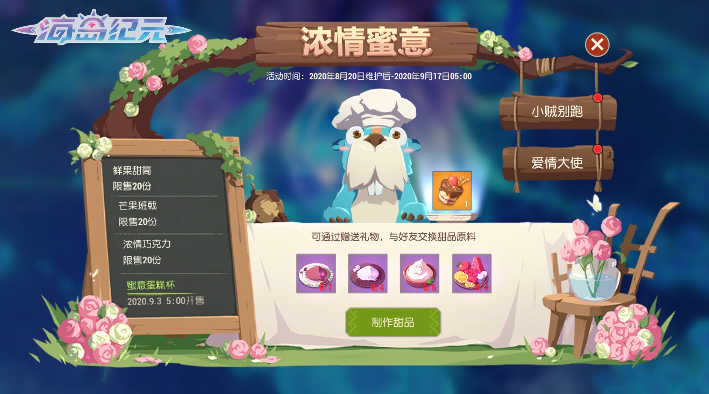 盛大舞会即将拉开帷幕,你将与谁牵手翩翩起舞呢?清新有氧的冒险手游《海岛纪元》,全新版本“甜蜜时节”明天即将浪漫上线!在这甜蜜弥漫的节日里,我们诚挚向大家送上舞会请柬,邀请大家穿上「花之恋歌」盛装,参加「浓情蜜意」、「甜蜜轰炸」、「浪漫之夜」、「伴你同行」等超多全新活动,一起度过浪漫的闲暇时光,留下夏日的美好回忆! 精致甜品浓情蜜意 邀你品尝 “甜蜜时节”宴会筹备中,除了优美旋律与炫目灯光,「浓情蜜意」活动端出的甜甜美食也是不可或缺的。参与活动,大家可以用各种材料精心制作出浓情巧克力、芒果班戟、鲜果甜筒、蜜意蛋糕杯等美味甜品,让「浓情蜜意」从舌尖直达心里!活动围绕准备和制作节日甜品,将分为两个阶段进行。8月20日更新后,通过组队玩法「小贼别跑」和单人玩法「爱情大使」,就能筹集到可可粉、糖霜、奶油等制作材料,并完成对应甜品制作。而最美味最特别的「蜜意蛋糕杯」,也将于9月3日5:00整甜美开售,你想要和谁一起分享这份馨香美味呢? 圣者高台传奇副本 静候挑战 除了节日带来的浪漫满溢的休憩时光,海民们在新版本中,也将迎来传奇难度「圣者高台」副本的挑战。作为继「结晶洞窟」之后第二个开放传奇难度的副本,圣者高台是朝圣者在峡湾与圣山交界处筑起的高台,也是海民对抗混沌入侵的桥头堡。通过「圣者高台」副本全新挑战的玩家,将可能获得上古传承防具、上古灵枝、上古绸缎、上古玄铁等稀有奖励。当然,随着奖励提升,传奇难度下的「圣者高台」也将更加考验大家的个人战力和技巧,团队战术与默契,你和小伙伴们准备好迎接全新挑战了吗? 炸弹对抗甜蜜轰炸 紧张刺激 七夕甜蜜氛围下的灵风城,古怪的年轻发明家甜田也突然现身,并号称带来了能让任何人相爱的宝物……听上去蹊跷可疑,这位自封的恋爱专家究竟创造了怎样爆炸性的发明呢?甜蜜时节期间的每周一、三、五、日,「甜蜜轰炸」活动将特别开启,大家可以在指定NPC处进行报名匹配。对抗中,玩家需要将己方半场的炸弹,在爆炸前丢到对方半场,在对方半场爆炸的炸弹越多,你的得分就越高。参与此活动可以获得桃心请柬、秘法松露、高阶宠物技能书等奖励喔! 舞会盛大开启,《海岛纪元》全新版本“甜蜜时节”明日浪漫来袭!在浓情蜜意的七夕主题下,全新时装「花之恋歌」即将惊艳上线,并带来「浓情蜜意」、「甜蜜轰炸」、「浪漫之夜」等超多全新内容与惊喜奖励。你准备好与心仪的那个人一起共度佳节,开启一段海岛浪漫情缘了吗? 【游戏介绍】 《海岛纪元》是一款清新有氧的海岛冒险手游。 在奇幻的卡琅古世界,海民将前往风格迥异的海岛、潜入深邃多变的海洋,在四大职业中任意选择,在双天赋养成中自由切换。你可以在这里建造别具一格的家园岛,驯养萌趣宠物,体验机制多样的副本和活泼欢乐的趣味玩法。快来掌握元素联动、巧妙扭转战局,在紧张刺激的PVP中一决高下吧! 改天是哪天?冒险趁现在! |