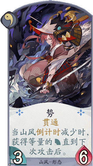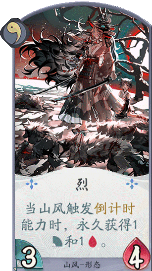 自然界本不存在规则,是强者的统治,让弱肉强食的丛林法则凌驾于弱小之上。比如说这位头顶兽皮的少年妖怪,他长着与人类相似的脸庞,习惯独自行动,难以相处,被称为“森林之王”。他就是山风。 没遇到薰以前,山风曾以人肉为食。这并不是为了果腹,而是为了满足口腹之欲,他不吃人肉同样也能存活。然而在很久很久以前,山风还只是一位普通的人类少年,与上一任森林之王的相遇,改变了他的命运—— 在某个寂静的夜晚,一只巨大的妖怪遇见了一位误入森林的人类少年。妖怪的身上充满着血腥味,少年以为他想要吃掉自己。但他却从少年的身边走过,朝少年的背后发出警告的低吟。少年颤抖着回头一看,发现一群狼正饥饿地盯着他。 当森林之王救了人类少年山风,他的世界迎来了一些改变。森林之王教会了山风许多事情,少年也不断地磨炼自己。森林之王开始带领着少年巡视他的领地,一起接受臣民们的敬意。他想要赐予少年荣誉,也希望少年能背负起责任。 可是,有一天,森林之王还是遭到了袭击。当山风赶到的时候,他的身躯和内脏已经被啃食干净,只剩下带着刺的兽皮,上面沾染着浓浓的狼的气味。身边的臣民们在流泪,只有山风没有哭泣,并把他的兽皮沉默地戴在了头上。 山风决心继承他的意志。当他在河边休憩的时候,看到了似曾相识的一幕。河对岸一群狼瞪大眼睛,虎视眈眈的盯着他。他身上散发着浓烈的血的气味;他的刀刃上满是战斗的痕迹。他一步步走向狼群,兴奋地完成了复仇的心愿。 后来,身为森林之王的山风,在斩除试图作乱的最后一只狼妖时不慎被其毒爪抓伤。山风将中了毒的皮肉咬下,在失去意识之前遇见了向他伸出双手并称他为“哥哥”的流浪少女——薰。 他长得酷似她死去的兄长,相似的面容让她生起亲近之意,就一直跟随着他。他不太爱笑,但是山风却真的把薰当作妹妹一样照顾,给她找吃的、打兽皮保暖等等,没有血缘之亲却胜似亲兄妹。 因为有了薰的陪伴,山风不再食用人肉,但这也让他变得虚弱。有一天他们中了狼妖的陷阱,为了让山风逃脱,薰用哥哥的匕首刺穿了自己的胸膛,祈求他吃掉自己以活命。山风吃掉了薰,使用禁术把她变成了失去记忆的妖怪。 虫师认为薰是弱小无知的妖怪,不能明白山风为什么对她如此上心。因为薰的变化扰乱了阴阳平衡,鬼使黑、白找上了山风,想要把薰带回冥界。即使虫师协助山风编造了谎言,但鬼使白还是趁虚而入把薰给带走了…… 百闻牌局上,山风是一位拥有大量倒计时法术的战士。他依靠倒计时发动战斗攻击,附带不屈效果提升了其站场能力。觉醒后,山风还可以免疫一次战斗伤害,即使是山风气绝,使用卡牌也能减少己方式神的倒计时。 “烈”是山风在一勾玉阶段的关键卡牌之一,它赋予山风触发倒计时即永久得到攻击力与生命值增长的能力,使山风的站场能力更可靠。“势”则配合山风的倒计时减少,获得等量的攻击力,贯通效果还解决了伤害溢出的问题。 百闻牌中,山风的倒计时具有强有力的控场作用,为己方输出提供了有效的保护。形态牌与觉醒牌赋予的不屈、战斗免疫效果,也保证了山风的站场能力。运用好山风的倒计时,相信你也能无往不利。 |