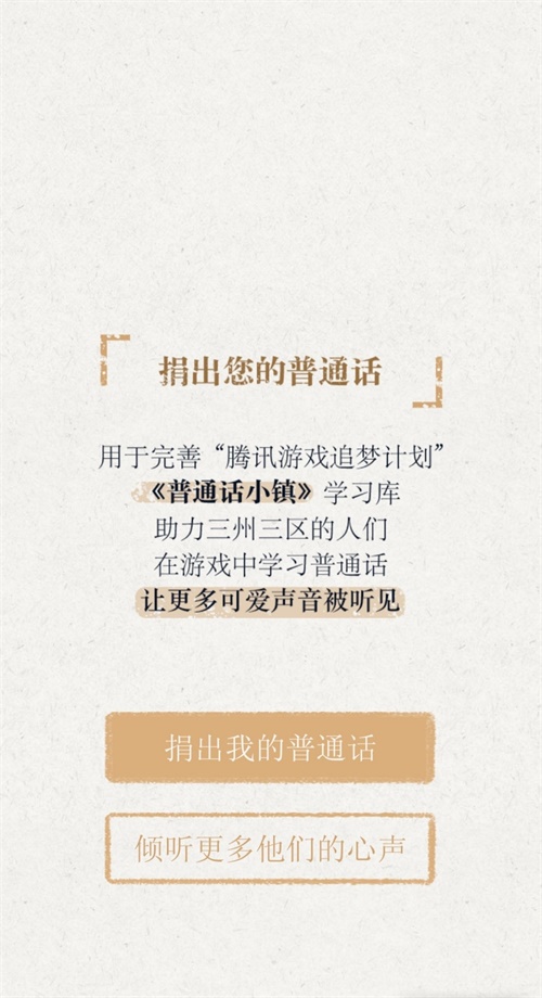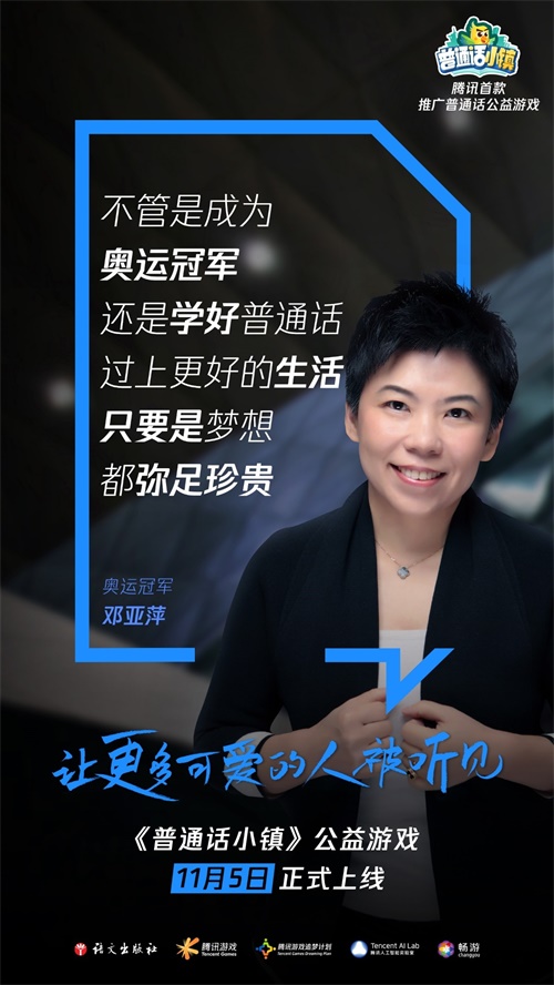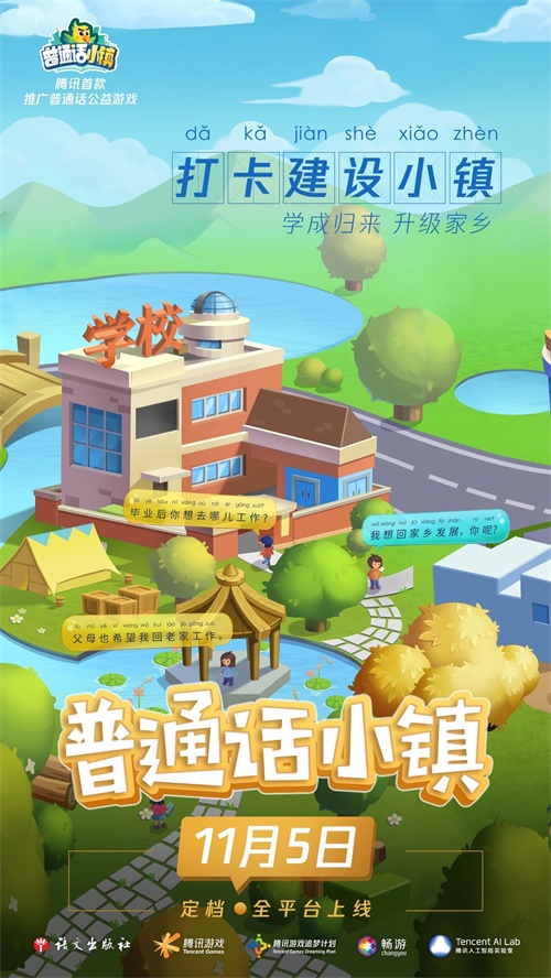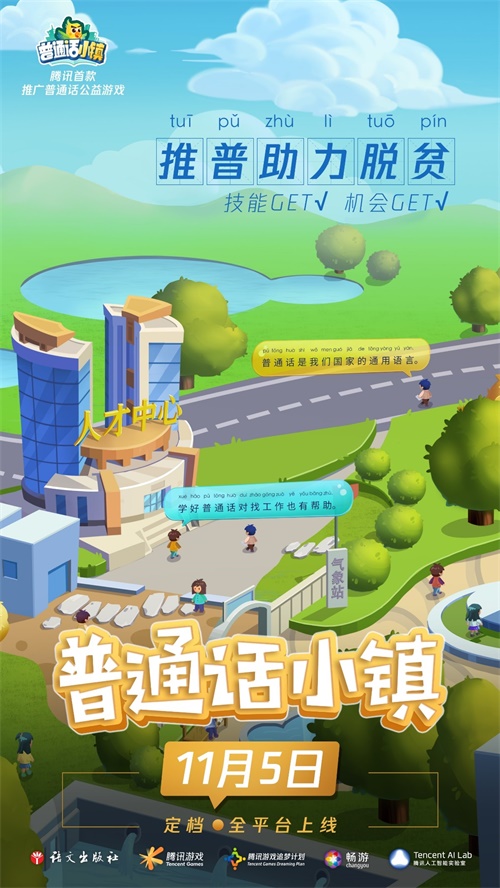 11月5日,由教育部语文出版社与腾讯游戏联合推出、腾讯游戏追梦计划与畅游共同研发的首款推广普通话公益游戏《普通话小镇》正式上线。据了解,《普通话小镇》是以教育部语文出版社出版的《普通话1000句》为内容蓝本,结合语音跟读、小镇养成玩法的一款功能游戏。这是继《画境长恨歌》之后,腾讯游戏追梦计划在2020年上线的第二款功能游戏,旨在以寓教于乐的形式激发用户学习兴趣,助力普通话推广,为我国2020年脱贫攻坚决战提供有效的数字化助力。游戏于11月5日全平台上线,用户可在腾讯游戏追梦计划官网、iOS、安卓各大应用商店下载体验。 五分之一人面临语言困境,《普通话小镇》拓展信息化扶贫之路 据第23届全国推广普通话宣传周公布的数据显示,全国范围内普通话普及率上升至80.72%,但“三区三州”等深度贫困地区普通话普及率仅61.56%,约20%国人还处于普通话沟通方面的困境中。报告指出,在部分农牧区,国家通用语言文字的普及程度仍然有待提高。 在《普通话小镇》宣传片中,共选取了代驾师傅、外卖小哥、美甲师、自由创业者等多位来自全国各地不同职业的务工人员代表,他们常常因为普通话不好而遭遇语言困境,而他们真正的需求和梦想却很少被听见。而宣传片里的这些采访对象,仅仅是因语言困境而遭遇生活窘境人群的一个缩影。 实际上,推普脱贫攻坚计划一直在行动。在2018年由教育部、国务院扶贫办、国家语委制定的《推普脱贫攻坚行动计划(2018-2020年)》中,再次强调了“扶贫先扶智,扶智先通语”,并提出“鼓励村民借助信息化学习工具和资源自主学习普通话”“研究开发或引进普通话学习辅助学具或软件”等具体措施。 《普通话小镇》结合人工智能技术优势,以信息化手段助力“推普脱贫”,致力于将科技成果向贫困地区转化,助力贫困地区人口学好普通话,消除因语言沟通不畅而难以脱贫的情况,为决胜脱贫攻坚注入信息化新力量。正如宣传片里的这群人展现的精神风貌一样:总有一天可以“学好普通话,让所有人都能听得懂”,实现美好生活的梦想。 基于多年研发运营的技术和经验,腾讯游戏追梦计划将语文出版社编写的普通话初学者的入门级学习用书《普通话1000句》数字化延伸至手机端,以易于上手的千句跟读对话、小镇养成玩法设计关卡,并通过学习成果解锁关卡的机制,帮助用户循序渐进提高普通话水平。 同时,游戏内置腾讯AI Lab语音识别中心前沿语音评测技术,支持游戏化的模糊评分和普通话水平的精准评分,可帮助玩家随时随地评估学习成效。 《普通话小镇》根据“三区三州”地区的生活、工作、学习等多元化场景设计,提供兼顾实用性、沉浸感的学习体验,让用户体验身临其境的学习效果。 全民助力“推普脱贫”攻坚战,让更多可爱的声音被听见 每一段温暖的声音,都是希望之光。 为了让更多可爱的声音被听见,《普通话小镇》发布之际,腾讯游戏追梦计划联合央视网,同步推出“捐出你的普通话”公益行动,以H5互动形式,调动更多人的参与热情,提高“全民参与”的社会影响力。 “捐出普通话,让语言成为我们的桥梁,为每一份梦想助力,让更多可爱的人被听见”,著名主持人杨澜、陈伟鸿共同助力,通过H5向大众号召参与“捐出你的普通话”公益活动,共同响应“推普脱贫”攻坚战,让人们在听见彼此中建立更加紧密的联系,帮助更多可爱的梦想被实现。 此外,奥运冠军邓亚萍,中国电子竞技第一人SKY、英雄联盟赛事官方主持余霜,以及平常在赛场上挥洒热血的电竞选手(EDG电子竞技俱乐部电竞选手和RNG电子竞技俱乐部电竞选手)纷纷化身“推普志愿者”,集体为“捐出你的普通话”公益活动打call! 值得一提的是,腾讯游戏会从参加此次“捐出你的普通话”公益活动的大众作品中,挑选合适的语音融入游戏语音包,从而帮助公益活动参与者完成“捐出你的普通话”的完整闭环,也让公益游戏《普通话小镇》成为全民助力推普脱贫的互联互动平台。 目前,我国贫困地区教育质量想要持续深化提高,仍面临着较大的语言问题,推广普通话可以成为提升贫困地区教育质量特别重要的抓手,对于打赢推普脱贫攻坚战具有重要的现实意义。因此,腾讯游戏追梦计划还将联合四川甘孜藏族自治州、福建、广西、云南等地,共同以《普通话小镇》为基础,围绕“追梦甘孜”“阳光1+1牵手计划”“扶贫车间”等多种主题形式进行扶贫合作,更有针对性地落实“精准扶贫”政策,让游戏更有温度。 左手游戏右手价值,让更多梦想可以被实现 2019年3月,腾讯游戏正式推出以实现社会价值为核心的腾讯游戏追梦计划。追梦计划面向政府、行业及消费者,积极传递游戏正向价值,致力于让游戏成为传承交流文化、激发培养人才、传递健康价值观的载体,涵盖游戏、编程教育、科技赛事等多业务形态。 目前,追梦计划已经累计对外发布包括《普通话小镇》《画境长恨歌》《健康保卫战》等在内的21款功能性游戏和1款青少年教育类产品“腾讯扣叮”,覆盖传统文化、科普、公益等多个领域,通过场景化设计,让功能游戏成为腾讯游戏进一步探索社会正向价值的重要媒介。 未来,在“让游戏更有温度”的年度核心主张之下,腾讯游戏追梦计划将重塑游戏软实力,持续拓宽游戏边界,推动游戏应用的研究发展,探索游戏与社会人文关怀结合的路