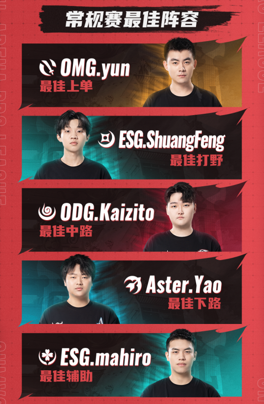 6月2日OPL春季赛季后赛正式打响,常规赛颁奖仪式接踵而来。历经十个比赛周,90个大场的生死厮杀,选手们尽情释放一腔热血,崭露锋芒。让我们一同回顾! 【常规赛MVP——ESG.ShuangFeng】 ShuangFeng以MVP数24、场均参团率77%、场均伤害占比23%的数据,斩获本次春季赛常规赛阶段的总MVP。 本赛季ShuangFeng由上路转至打野后的表现可圈可点。顺风时,ShuangFeng是一柄利剑,直指对手咽喉;逆风时,ShuangFeng是蛰伏的猛兽,等待时机迅猛反扑,多次扶大厦之将倾。是团队的大核心,亦是ESG本赛季能突破重围的功臣之一。 【常规赛最佳数据】 LF.Yelan以场均击杀4.51,总击杀数302的数据成为常规赛击杀王。LF.MMT以场均助攻8.61,赛季总助攻数577的成绩成为常规赛助攻王。Yelan与MMT作为LF下路组合,是公认的最强下路组合。尽管常规赛阶段LF大场成绩不佳,但从最终数据来看每场LF的输出都极尽暴力,不负王者之名。 Aster.J以场均承伤60002.96,赛季总承伤4260210的数据成为常规赛承伤王。J与打野Er的上野联动效果奇佳。J获得承伤王,正是他对团队做出极大奉献的证明。 【常规赛最佳阵容】 最佳阵容是由OPL及每家俱乐部、解说联合,对每个选手的表现及数据评估后投票选出的。春季赛的“银河战舰”由:最佳上单OMG.yun、最佳打野ESG.ShuangFeng、最佳中路ODG.Kaizito、最佳射手Aster.Yao、最佳辅助ESG.mahiro五人组成。 上路的yun是开团好手,战术灵活变通,又能在逆风时为队伍兜底。打野ShuangFeng勇猛无双,无畏前行。再有定队神中kaizito,“k字辈中单第一人”。射手Yao的强势线权,刺客走位总能取对手性命于无形。辅助A7时隔多年重回赛场,诡谲战术出奇制胜。在人才如云的OPL赛场中,这五人能脱颖而出,实至名归。 风起云涌,战火盎然,季后赛角逐命悬一线。期待未来,有更多选手在OPL赛场上破镜成王,逐梦成光! |