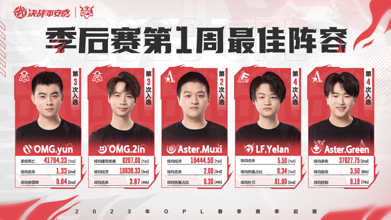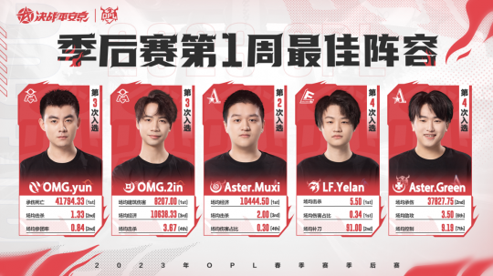 黑马死战,王者觉醒。LF找回状态,顺利保留胜者组席位。ESG、ODG、TK、ZGDX遗憾暂别赛场。OPL春季赛季后赛首周的结果恍若一记惊雷,似在宣告——LF即将王者回归。赛前被人看好的黑马们全部陨落,季后赛竟还是老四强。凡者涅槃,强者更强!春季赛结果不到最后一刻,仍未可知。 【箭矢折羽,星辰决胜——Aster 3:2 ESG】 6月4日败者组第二轮比赛。在解说主持更看好ESG的情况下,Aster冲破桎梏晋级成功。比赛初,ESG先下一局,Aster在第二局立刻调整状态,扳回一城。时至两队交战的最后一局,双方比分2:2生死一瞬。 第五局,Aster十分大胆的选出自信阵容,让中路Muxi使用到逆版本法刺式神妖琴师。比赛10分钟,双方蜃气楼团战Aster打野先行阵亡后,Aster向后撤离。Muxi妖琴师使用三技能返场,找到没有虫师保护的铃鹿御前,一套连招带走,成功为Aster打开局面。随后,Muxi的妖琴师多次出其不意的切入,输出拉满。Green的匣中少女多次从夜叉大招中保住Muxi状态,再配合Yao发育极好的妖狐,干脆利落的赢下本场生死局。 【每周之星】 行若鬼魅,琴音夺魂。季后赛首周每周之星由Aster.Muxi夺得。Muxi曾凭借一手妖琴师惊艳四座,而版本调整下法刺输出环境堪忧,比赛场上罕见。但季后赛中,Muxi在连续两天的比赛中均逆着版本选出了招牌式神妖琴师。 纵使面对LF失利,但在对战ESG的大场中终究打出了奇效,为自己正名,更为队伍夺得了晋级的门票。而Aster无惧无畏,逆流而上的BP,也让观众看到了少年们的热血不减当年,依旧是那闪耀的群星。 【最佳阵容】 季后赛第一周最佳阵容,上单:OMG.yun、打野:OMG.2in、中路:Aster.Muxi、射手:LF.Ylan、辅助Aster.Green。 本周OMG以3:0大比分赢下LNG.M,并且整场比赛节奏被牢牢掌握在OMG手中。第二小局yun使用狸猫配合2in的骨女在四分钟拿下双克之理,并成功夺取蜃气楼。第三小局2in再次使用骨女,在18分钟配合队友打出0换4,迅猛的赢下本场。从OMG近期状态来看,队员手感火热。 进入季后赛LF一改状态,仿佛进入了自己的“舒适圈”。对阵Aster第一小局LF就展现出了赛场统治力,yelan使用二口女打出全场最高输出。随后的第二小局使用阎魔更是以0换3,拿下三大神器。cold使用夜叉也获得两个小场mvp,LF众人的状态愈佳。 乘热打铁,胜者组第二轮OMG即将迎战LF,两支队伍谁能抢先拿到决赛门票? 6月9日经典四强两两相见。走到这一步,本赛季各自的成长如何,一切赛场上见真章! |