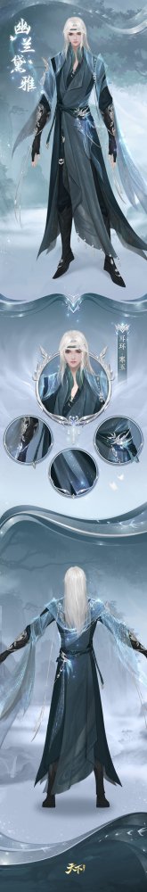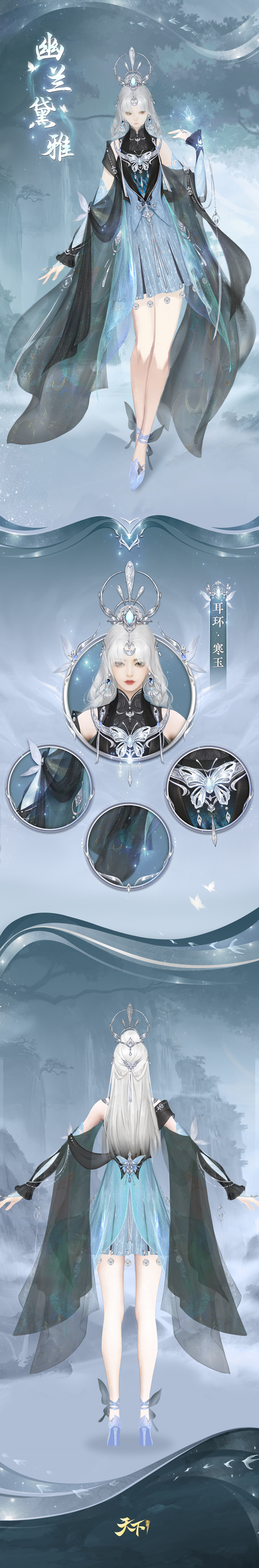 深山幽谷,暗香浮动,银蝶在此蹁跹起舞,远处似有水声潺潺,一幅闲适静谧的画卷由此铺开。全新时装【幽兰黛雅】展现了神秘的异域风情,快一起来看看吧~ 幽兰黛雅·女 少女将霜色秀发梳成发髻挽于脑后,搭配镶嵌着碧蓝宝石的银头冠。短裙以玄色与水蓝色为主色调,精致的银圈绕其肩侧,优雅的蝶形配饰栖于胸前,颇有几分异族气息。 银链与半透的黑纱披帛缠绕在手臂上,披帛上的青绿暗纹交错与裙摆中的点点细闪交相呼应,如天光云影璨璨生辉,裙边下有银饰垂挂晃动,更衬得少女袅袅婷婷,一步一履间让人无不为其倾倒。 (最终展示以游戏内实装效果为准) 幽兰黛雅·男 少侠佩戴苍色抹额,一头秀逸的银发披落及肩,鸭青色盘扣长袍修饰其挺拔的身躯,飘逸的浅蓝薄纱环绕其侧,手臂的花瓣状银铠更显刚柔并济。 燕雀配饰装点腰间皮带勾勒出少侠体态犹如劲竹,长袍前襟的流云暗纹低调雅致,衣摆下有菱形银片作配,行走间叮铃作响,似溪流潺潺,如此独特的气质无论到哪都可牵引众人的目光! (最终展示以游戏内实装效果为准) 新外观【幽兰黛雅】将于本周四更新后上线!少侠们快换上雅致新时装一起同赏大荒美景吧~ 《天下》手游2023年度重磅资料片「决战,太古铜门」震撼上线!全新开放大地图【太古铜门】等你探索,血战重启带你重燃当年热血;《天下贰》大区同步开启,回归绿色轻负担,众多《天下贰》玩法抢先体验;全新手工装备系统及装备属性转移功能开启,零门槛打造可交易极品神兵,在大荒实现暴富梦!天下IP十五周年庆典狂撒百万福利,诚邀少侠共庆周年! |