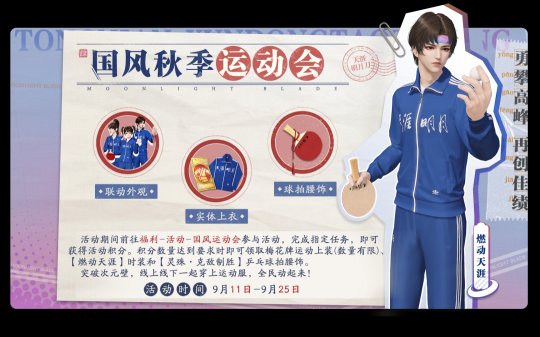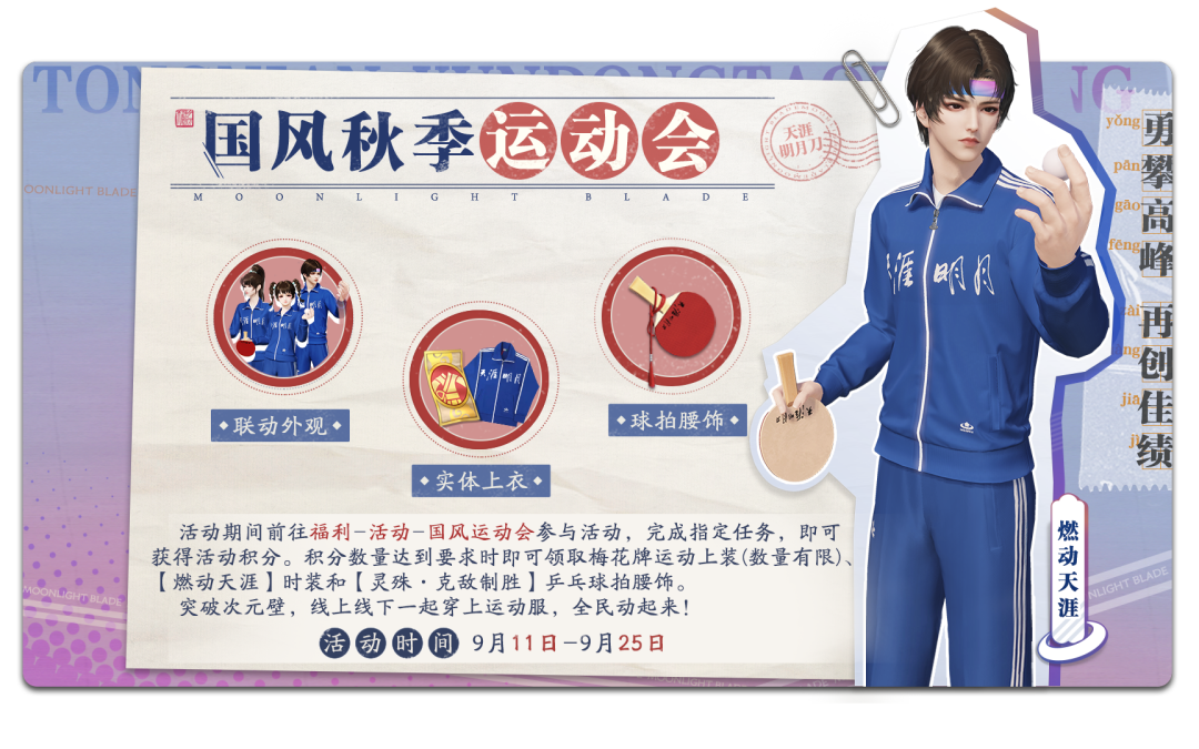 与国牌联袂,诠释国风新风尚!全民运动的季节迎秋开启,刀刀携手经典国货运动品牌“梅花体育”开启江湖新风潮,联动款外观【燃动天涯】于9月11日随全民普赠活动赠以各位八荒健儿,同款实体联动运动服上架天猫【MEIHUA旗舰店】与抖音【梅花旗舰店】,一起运动强身健体! 国风运动季系列活动也在火热展开中,首环接力赛开场“选手”99公益日系列活动已启动,少侠快来和刀刀一起得小红花、守护豹豹、领豹豹头套!绝美外观圣绣·吟游诗现已上架商城,开启四折限时特惠购活动,还有同款动作与饰品同期上架,一起感受芬芳秋季~ 刀妹温馨提示:飒爽金秋,全新江湖等你来闯!金秋新服【微信30大区-白头永偕】和【手Q24大区-桂馥兰香】现已开启,新服活动福利全面升级,神侠伙伴【傅红雪】强势助力,还有珍品道具、绝美外观等你来拿! 燃动天涯外观普赠 全民席卷运动风潮 天行健,百舸争流;梅香来,引燃八荒!联动款外观【燃动天涯】即于9月11日随全民普赠活动惊喜放送!【燃动天涯】外观附赠动作【我意】,使用后可切换胸前字为少侠当前对应门派名,八荒运动健儿集结,勇争上流!还有同主题乒乓球拍腰饰【灵殊·克敌制胜】及腰饰附带动作【颠球儿】随普赠活动同步上线哦! 【燃动天涯外观三体图鉴赏】 【燃动天涯】简洁休闲的运动风格引起江湖新风潮!少女款可爱活泼的双马尾击中健身女孩的心,成女简洁的单马尾也非常适合运动的场合,成男的帅气短发不禁让人回忆起漫画中的运动系学长~无论是在运动场上还是江湖竞技中,愿少侠们永远保持锐意进取之心~ 同款实体联动运动服已上架天猫【MEIHUA旗舰店】,舒适柔软的质地、宽松休闲的设计,它就是本季入秋首选运动服! 淘宝搜索“MEIHUA旗舰店”,店铺搜索输入关键词“天涯明月刀”,商品页下单购买!打开淘宝APP,扫描下方二维码也可选购! 【扫以下二维码前往选购】 【国风秋季运动会限时福利】 9月11日-9月25日期间游戏内前往福利-活动-国风运动会活动,完成指定任务,即可获得球球。 球球数量达到要求时可领取梅花牌运动上装实体衣服(数量有限)、【燃动天涯】普赠时装(附赠动作“我意”,可切换本门派字)和【灵殊·克敌制胜】乒乓球拍腰饰。 突破次元壁,线上线下一起穿上运动服,全民动起来! 此外,天涯明月刀手游微信圈【刀刀运动会福利赛】迎秋开幕!完成指定任务即可抽取游戏好礼,【圣绣·琼林宴】、涂山铃等你来抽!在指定话题下分享你的外观穿搭还可领取碎银、精工材料哦,少侠快快前往天涯明月刀手游微信圈参与活动吧! 守护雪山精灵雪豹 携手刀刀一起做好事 择善者而从之,美自归己。2023年99公益日“守护雪山精灵雪豹”计划上线,刀妹诚邀各位少侠来参与,跟天涯明月刀与腾讯公益一块玩游戏、做好事,通过线上的数字公益场景保护雪山中的精灵。 即日起至9月14日,少侠通过游戏内【福利-活动-公益合作】前往活动界面,每日参与小豹向前冲、雪豹在哪里、雪豹知多少闯关任务,即可获取小红花。全服少侠完成小红花累计目标,腾讯基金会将支持雪豹栖息地巡护、开展雪豹栖息地的监测工作等,携手江湖少侠一同完成公益项目! 少侠参与活动并累计指定数量小红花,还可领取活力十足的动态表情【豹笑】及魅力满分的豹豹头套【吾爱·来豹豹】,闯荡江湖之时携小红花以赠天涯~ 扫描下方二维码即可送出你的小红花支持守护雪山精灵雪豹公益项目,快来跟刀妹一块做好事吧! 【扫以下二维码支持公益项目】 圣绣·吟游诗四折上新 唤醒楼兰之梦 秋游时间到!除了运动休闲的外观,美美的小裙子也要安排上~【圣绣·吟游诗】外观现已经上架商城,同期开启四折限时特惠购活动,还有同款动作与饰品同期上架哦!在吟游诗人的字里行间寻觅一个扣人心弦的故事,唤醒一场深藏在沙漠尽头的楼兰之梦~ *受平台上传限制影响,所有图片存在严重压缩 【圣绣·吟游诗外观鉴赏】 【圣绣·吟游诗】精致重工的刺绣与珠宝缀满全身,轻纱在风中飘舞,恍惚间见到了风沙中的楼兰宝藏,在每一位过客心中种下明亮的梦。 【灵殊·花乐吉祥腰饰鉴赏】 宝相花盛开而祥云飘落,少年的心落于每一拍乐舞之上。精致美丽的腰饰【灵殊·花乐吉祥】飘动的丝带诉说着楼兰的往事,搭配【圣绣·吟游诗】一整套也非常的华贵优雅~ 【动作·铃鼓舞鉴赏】 舞动声,跨世来。同主题动作【铃鼓舞】,翩若惊鸿婉若游龙,柔美又不失力量的舞蹈,也舞进了刀妹的心巴上~ 以上就是今天的全部内容啦,多款精美外观与多重福利,在金秋为少侠带来双倍快乐!快穿上【燃动天涯】普赠运动服,突破刀刀次元壁,线上线下一起穿上运动服,全民动起来!更多精彩资讯与刀刀攻略请继续关注刀妹! |