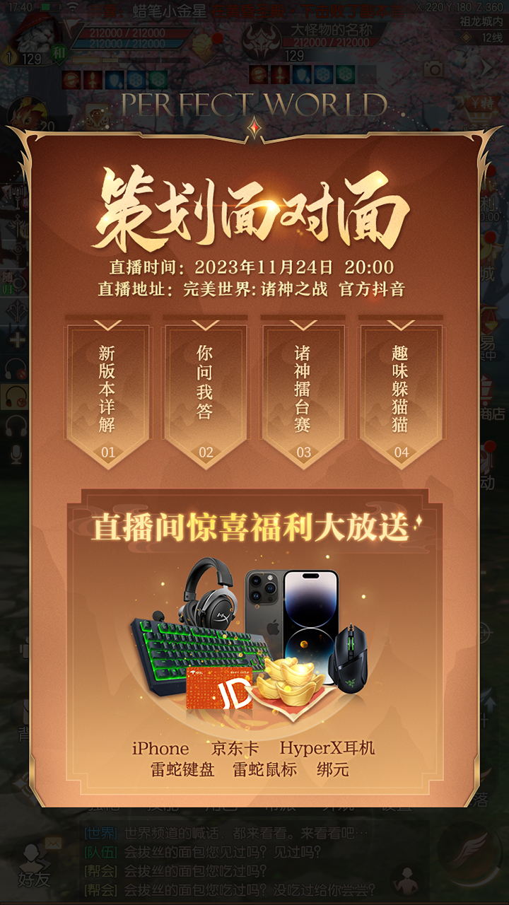 《完美世界:诸神之战》全新万人新服&全新版本今日盛大开启,与千万修真者一起再赴祖龙城、黄昏圣殿,重拾完美大陆带给你的热血与感动!体验帮派领土掠夺战、时空之轮新赛季“幻世浊尘”等全新玩法,创角登录即可领取橙色装备与绝版坐骑! 【万人大服 今日开启】 全新万人生态服务器【诸神集结】今日开启!还是那个完美世界,还是那个祖龙城!千万修真者挤爆完美大陆,祖龙城大街小巷热闹非凡,组队匹配、日常活动、PVP玩法、GVG等海量玩法全面升级,与当年老友一起重温经典副本黄昏圣殿,重拾往日热血与感动,更可一键开启经典怀旧UI找回当年端游时代的青春记忆! 【领土掠夺 全新模式】 全新大型策略PVP对决帮派玩法--帮派掠夺战将同步开启!各大帮派势力可对指定帮派宣战并开启掠夺战,在掠夺战中,整个地图会被划分为一个个格子,双方帮派成员需要在沙盘中步步为营,通过紧张刺激的PVP战斗来占领尽可能多的地块或特殊据点!占领不同类型建筑还可获得不同的局内加成效果,最终将根据双方帮派的占领情况判定掠夺战胜负,获胜帮派将获得大量帮派资金及帮贡奖励。驭兵御将,运筹帷幄,战火一触即发,攻守之道,唯有精确部署和英勇指挥才能征服战场,将山河领土尽收囊中! 【焕新赛季 幻世浊尘】 时空之轮新赛季“幻世浊尘”即将来袭!时空之轮副本内新增怨气机制玩法,修真者在副本中可以使用道具“浊气丹”以解锁怨灵能力,选择不同属性的怨气将获得不同的对应增益效果,新赛季还将设置通关排行榜,并随赛季周期进行结算,除了可以获得丰厚的赛季奖励外,排行榜上榜玩家还将获得独占的名片背景奖励! 【横竖自由 想玩就玩】 为了给用户更好的游戏操作体验,《完美世界:诸神之战》横竖屏切换功能进行了进一步优化,游戏支持在任意游戏场景下进行横屏与竖屏的自由切换。全新的横竖切换功能让玩家可根据自己操作习惯实时自由选择横屏or竖屏模式,并且可以点击原转换按钮即可轻松还原。忙碌时用竖屏,闲暇时用横屏,双屏随时随地自由切换,姿势你定想玩就玩。 【福利爆满 拿到手软】 新老玩家福利送送送!登录游戏上线即可获得橙色装备、绝版金毛狮王坐骑等超值福利。还有新服专属惊喜福利等你拿,专属+8武器、橙品项链助力问鼎修真之巅! 回流玩家更有千元新服冲刺礼&老服资源追赶礼全面放送:专属陪玩、千元好礼、买1赠N......游戏内也准备了五重回归大礼包,整套金装等你来领,轻松直追战力无负担畅快修真! 11月24日20点《完美世界:诸神之战》官方抖音直播间还将开启现场直播,修真者可与策划面对面畅聊游戏内容,万元大奖等你来领! |