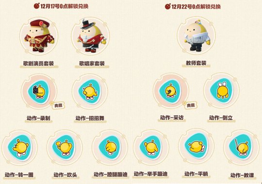 狂欢庆典精彩纷呈,环环相扣惊喜不断!12月15日,欢乐世界休闲竞技手游《蛋仔派对》邀请5亿蛋仔同庆蛋搭节,“欢蛋周”10大豪礼率先高燃登场!联动外观三连送,典藏盲盒0元购,彩虹币任性撒,打卡册蛋币全额返,海量外观登录送……众多心动福利纷至沓来,只为给蛋仔们编织一场惊喜不断、收获满满的回馈狂欢盛宴! 1.《蛋仔派对》蛋搭节狂掷豪礼 福利一:草原新友来访,免费外观三连击 《蛋仔派对》×《喜羊羊与灰太狼》游戏联动欢乐再启,草原新伙伴受邀上岛共度节日。12月15日起,三款联动外观每周接连上线,完成联动活动任务即可全部免费领取!外观活动解锁顺序为小灰灰、美羊羊、沸羊羊,获得前一联动外观后方可继续解锁后续活动。邀请好友助力还可加速小灰灰外观获取,最快仅需1天便可接小灰灰回家! 2.《蛋仔派对》×《喜羊羊与灰太狼》联动欢乐再启 全新联动捉迷藏地图“狼堡”也于12月15日重磅登场,森林深处的威严古堡等待蛋仔们前往探索,用躲找追逃的欢声笑语,为火热庆典增添浓墨重彩的一笔。 3.全新捉迷藏地图“狼堡”重磅登场 福利二:登录0元购,典藏外观免费送 12月15日至1月18日,“登录0元购”正式上线。活动期间登录游戏,即可在十款人气典藏外观中任选一款,以0元价格免费获取!十款萌趣外观,定有你的心动款~ 4.典藏盲盒外观免费送 福利三:彩虹币大放送,盲盒十连抽轻松拿 12月15日至24日,彩虹币雨下不停,蛋仔连续登录10天并完成每日任务,每日都可领取6个彩虹币!活动期间,更有两期“狂欢星期六”同步上线,10天内累计共可直接领取72枚彩虹币,助力派对季盲盒十连抽,祝大家欧气满满心愿皆成! 5.彩虹币大放送 福利四:职业外观&趣味动作,13大好礼直接领 挥洒想象星光,演绎创意剧场。12月17日与12月22日,3款职业外观与10个趣味动作将分次解锁上线。典雅高贵的歌剧演员套装与歌唱家套装,将表演怎样的离合悲欢;简约利落的教师套装,又将引领怎样的课堂奇遇;更有【采访】、【录制】两款全新典藏动作齐放送,为蛋仔们开拓更加自由的扮演空间!蛋仔们可使用“潮流纤维”在活动兑换商店、商城免费获取,也可前往派对步行街商店使用“小红花”兑换获得。快发挥天马行空的想象,用创意无限的小剧场,为蛋搭节增添更多欢乐吧! 6.职业外观、趣味动作上新 福利五:水果剑客造访,配饰表情免费送 纵然行走天下荆棘遍野,有好友相伴亦坦然无惧。12月15日至29日,《蛋仔派对》×《果宝特攻》联动风云再起,萌趣新果重磅登场,书写全新的江湖传说!吉星高照陆小果,侠肝义胆梨花诗,情深义重花如意,更有多款联动配饰、限定动作与表情欢乐上线,邀请蛋仔相约武林共闯天涯!联动期间,蛋仔完成活动即可免费获取联动配饰及表情,除此之外三位往昔之交也将于近期归来,敬请期待。 7.《蛋仔派对》×《果宝特攻》联动风云再起 福利六:渠道外观上线领,五湖四海来相聚 无论五湖四海天各一方,5亿蛋仔齐聚同一场狂欢盛宴,心与心的距离如此贴近,12月16日起,华为、OPPO、vivo、小米、好游快爆、TapTap、4399游戏盒及官网8款渠道及官服外观惊喜来袭!活动期间登录游戏,即可免费领取属于对应渠道或官网的定制款外观,以萌趣形象彰显渠道特质,无论来自天南海北,共赴蛋仔岛的快乐归途。 8.渠道专属外观免费领 福利七:四大平台同欢庆,定制外观免费领 伴随蛋搭节的火热开启,蛋仔的快乐心情也在社交平台上传递蔓延。12月16日起,关注b站、小红书、抖音、快手四大平台的《蛋仔派对》官方账号资讯,参与活动,即可免费领取对应的平台定制外观,以充满平台个性的新潮穿搭,助燃蛋搭节的狂欢热情! 9.平台定制外观免费领 福利八:全新瓶盖盲盒,奇趣装扮免费得 蛋搭节温暖开场,福利满满上新装。12月16日,四款瓶盖盲盒外观新品上架,等待蛋仔品鉴全新潮流的魅力!肥软可爱的小鳄鱼,整洁优雅的学院套装,热血激情的拳击套装,潇洒不羁的牛仔套装,多重风格可盐可甜,用奇趣造型装点蛋搭节的精彩纷呈,带来个性鲜明的视觉盛宴! 10瓶盖盲盒上新 福利九:暖冬打卡册,高级手册全额返 12月15日至1月4日,暖冬打卡册惊喜上线,蛋仔们累计登录7日即可免费领取众多道具好礼与全新玩具【蔚蓝手风琴】! 花费300蛋币解锁高级版打卡册,完成打卡即享全额蛋币返还,还可额外获得彩虹币*30、表情【欢呼】和典藏乐器【夜咏手风琴】奖励!柔美悠扬的乐音,细腻柔和的旋律,手风琴正娓娓奏响属于冰雪与欢庆的贺歌。 11.暖冬打卡册 福利十:组队不掉星,冲刺巅峰新高度 掉星不发愁,蛋位保护助蛋仔快乐开黑!12月15日至21日期间,参与巅峰派对双人或四人玩法,即可享受每日3次巅峰派对不掉分保护,凤凰蛋蛋位以上触发不掉分保护。 12.蛋搭节开黑蛋位保护 福利不断,惊喜不停。12月15日,欢乐世界休闲竞技手游《蛋仔派对》狂欢庆典“蛋搭节”正式开启,用一场精彩纷呈的岁末盛宴邀蛋仔共享五亿喜悦硕果。快快搭乘蛋搭节的欢庆列车,向着快乐一路进发吧! 【关于《蛋仔派对》】 咔咔~欢迎各位光临蛋仔岛!(*?▽?*)12月15日《蛋仔派对》蛋搭节盛大开启,和5亿蛋仔一起派对!蛋搭节豪横福利倾情奉上:小灰灰、美羊羊、沸羊羊全部免费送,多款萌趣外观统统收入囊中,日日狂撒彩虹币雨,组队巅峰不掉星,更有果宝特攻新朋友抵达蛋仔岛! |