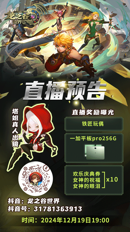 《龙之谷世界》的先锋二测已步入第13天,40级的新内容也已开放,在这段充满挑战与乐趣的游戏时光里,冒险家们并肩作战,用热情为游戏增添了许多色彩。同时还没有进入我们游戏体验的冒险家们也不用着急,可以进入我们的官网或者taptap进行游戏预约,等待我们《龙之谷世界》的公测上线。 为了更好地倾听冒险家们的声音,我们特地安排了一场玩家与策划面对面交流的直播活动。希望通过这次直接对话,能够进一步拉近我们之间的距离,共同创造更加精彩的游戏世界! 本次【策划面对面】直播活动,我们的塔姐将携手战斗策划汤圆大大,一同与冒险家们见面交流。直播将于12月19日晚上7点在抖音平台准时开启,同时在直播期间,大家能看到我们先锋二测新开启的40级内容,并且抓几个小伙伴和我们的策划汤圆大大一起对狮蝎巢穴发起进攻,我们还可以与策划和塔姐PVP,进行暴打策划的环节,我们将给匹配到的小伙伴送上一份犒劳礼包(欢乐庆典券*10,女神的祝福*10,女神的眼泪*10)!最最最重要的来啦,在直播中,各位小伙伴对我们《龙之谷世界》先锋二测有什么问题都可以直接问!让我们的策划与塔姐正面回答!让大家看的开心玩的高兴! |