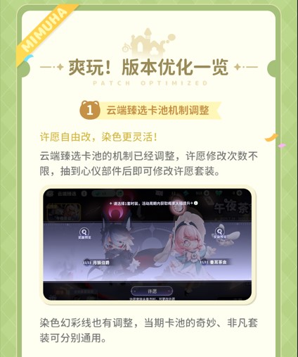 精神超前的生活模拟游戏《米姆米姆哈》,7月24日全平台惊喜上线! “米姆陪你,总有惊喜!” GoGoGo,出发咯~!由摩尔庄园制作人郑宙理带队原班人马研发,精神超前的生活模拟游戏《米姆米姆哈》正式官宣7月24日全平台惊喜上线!在禁止孤单的梦世界,你可以驾驶蒸汽飞屋拜访好朋友们,还可以在米姆的陪伴下畅游各主题浮空岛。在你专属的岛屿,有可爱的米姆帮你种菜生产、陪你采集钓鱼,无限制的装修岛建总有人为你点赞和夸夸,还有热闹的好友party,感受超绝解压的惊喜生活。 策划现身“菜市场”卖菜!定档直播真的太精神超前! 虽说距离月底上线还有一段时间,但由于米姆们的勤劳属性大爆发,“亩产万斤的蔬菜滞销”,这使得策划们“被迫”开启直播卖菜,现场环节中策划首度带大家提前了解了上线版本的第一手内容,像是多个全新的岛屿、新增更多的米姆类型以及更加丰富的社交玩法,策划甚至还将开服大事件以及上线福利提前“透露”给大家。 直播过程中,策划全程干货拉满,给大家带来的不仅仅是上线新内容,同时与玩家们开场了一场“面对面”的走心交流,制作人与策划们读取了部分玩家留言,并就大家关心的问题进行了回复,这当中涉及了游戏优化,未来版本规划以及联动等多种情报。 更令人惊喜的是,官方特别呈现了来自经典IP《摩尔庄园》中凯文的原型,以及“么么公主”角色配音者MOMO等人专程发来的视频祝福,这唤起了不少人的童年记忆。 惊喜内容提前看!全新玩法让你嗨玩浮空岛! 梦想家们你还在苦于自己的音乐细胞无法释放吗?那么现在机会来了,本次公测版本中会上线“迷星派对”玩法。在这次的玩法中可以与好友一起参与迷幻热力的音乐派对!在每天特定的时间点,人从众的云蹦迪现场就会在游戏内上演,公测期间还有超多达人也会来迷星派对一起玩,说不定你关注已久的达人就能成为你的舞蹈搭子 人物角色上也将迎来潮流升级,超过23套当季时装可供搭配,通过染色功能甚至可以为它们换上你更加钟意的颜色。除此之外,每个赛季可以通过商店兑换更多不同种类的时装,以便你搭配出更多的服装风格。 大家关心的米姆部分,这次策划也带来了最新消息,截止到上线版本已经有超过50余种不同类型的米姆可以为你打工。此外,米姆在捕捉、养成上降低了门槛,官方还贴心的准备了米姆百科以展示所有的米姆分布,还收录了当前解锁的米姆约会配方,以便大家查阅。 此外新老玩家这一次又将迎来更加风格迥异的打卡圣地,巨树岛与树心岛这两大全新的岛屿带来了超大的地图面积,探索乐趣度也将升级。 巨树岛 树心岛 玩家还将获得更多的“福利机制”,例如常驻家具池将会定期刷新免费抽取次数,限时和常驻家具池的保底抽数也将大幅降低;甄选卡池也将许愿次数改为不限之外,抽到心仪部件后可以修改为许愿套装等。 老玩家应该知道《米姆米姆哈》中浮空岛屿是所谓8D立体的存在,不仅地形能改变,高度也没有上限,甚至可以浮空搭建,这次新版本中自定义玩法也将迎来升级,配合自定义组件+自由偏移旋转的玩法,只要各位有足够的脑洞,完全可以搭出更有特色的岛建作品。 定档狂欢!千万预约达成惊喜福利大放送! 目前,官网千万预约人数目标已经全部达成,在开服前夕只要预约过的玩家,就可以在登录游戏时领取全部预约奖励,如果你现在还没有预约的话,不妨动动你的小手前往官网预约起来吧! 除了预约福利外,这次上线期间也为大家准备了海量福利,参与活动免费领超过150抽福利,上线累计福利项300+。还有18套华装免费拿,80+个免费部件可以随心穿搭!多多关注官方账号,还有更多游戏兑换码、周边等好礼相送。 MBTI测试找米姆搭子,快来承包属于你的农场 游戏上线在即,也许你在寻找游戏搭子上有些困惑,不用担心!官方提前准备了专属于米姆版本的种田MBTI测试题,分享后不仅可以收获游戏搭子,同时还有机会获得官方送出的海量游戏奖励,甚至有幸运儿会收到官方送出的“菜地一年专属权”,让你在接下来的一年中不仅享受菜地的全称托管服务,同时还有每月一次蔬菜包邮到家的服务,并且农场提供的多种时令蔬菜是任君选择哦! 《米姆米姆哈》为所有在忙碌生活中寻找小确幸、渴望轻松一刻的你,打造的一个避风港,一个可以尽情释放想象力、用快乐化解压力的平行世界。在这里,生活经营不再是琐碎,而是创造美好的过程。现在,准备好你的脑洞以及游戏搭子,一起沉浸在这个萌趣治愈的梦世界里吧! |