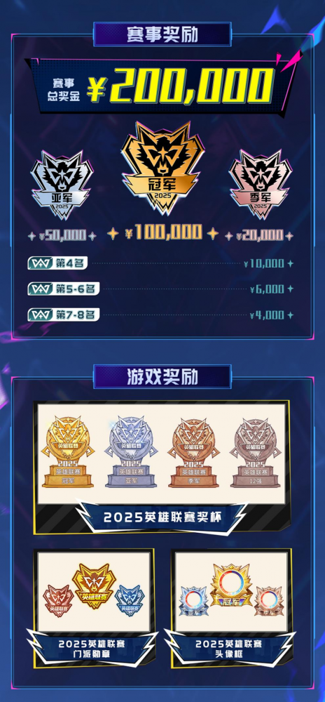 无惧黑夜,一战封神!在狼队友们的万众期待中,汇聚全服狼人杀顶尖高手的终极角斗场——2025狼人杀英雄联赛序幕拉开。匹配机制升级、实名认证开放、专业裁判护航,,打造公平公正的赛事环境,还有20万现金奖池等你解锁!今年,谁将加冕为王? 【赛事升级,全方位打造公平赛事环境】 本次英雄联赛赛事进一步升级,海选赛期间匹配机制优化,骑士团审核力度加大,严厉打击游戏里的违规行为,淘汰赛赛段开启后,将使用实名刷脸认证,杜绝代打等行为。还有专业裁判保驾护航,为参赛选手们打造一个公平公正的赛事环境。 【赛制安排,晋级通道抢先知晓】 按照本届英雄联赛的赛制安排,门派联赛会有五支门派直接晋级英雄联赛总决赛,而线上海选赛将决出 72 个门派晋级线上淘汰赛,淘汰赛将产生6个晋级名额进入总决赛,人气复活赛还将有1个门派获得总决赛资格,最终12支门派将齐聚一堂,共同角逐 2025 狼人杀英雄联赛总决赛的冠军。 本次英雄联赛预约报名时间为7月21日—7月24日,7月25日海选赛正式开启,持续到8月7日结束,期间门派报名参赛。 【赛事奖励,20万现金奖池等你解锁】 本次英雄联赛奖金池高达20万现金奖励,成功夺得冠军的门派将成功获得十万元现金大奖,获得亚军和季军的门派将额外获得5万及2万现金奖励,总决赛排名前八位的门派也都将获得金额不等的现金奖励,同时还将解锁游戏奖杯、门派勋章等多重游戏福利。 【报名指引,前往专题页面即可报名】 预报名开放后,各门派掌门可以前往游戏内点击主界面英雄联赛赛事专题页面,点击报名,填写相关信息并提交,即视为报名成功,海选开始后,已报名的门派中满足条件的成员即可进行海选赛匹配,并累积积分,最终总积分排名前72的门派可以晋级淘汰赛。 |