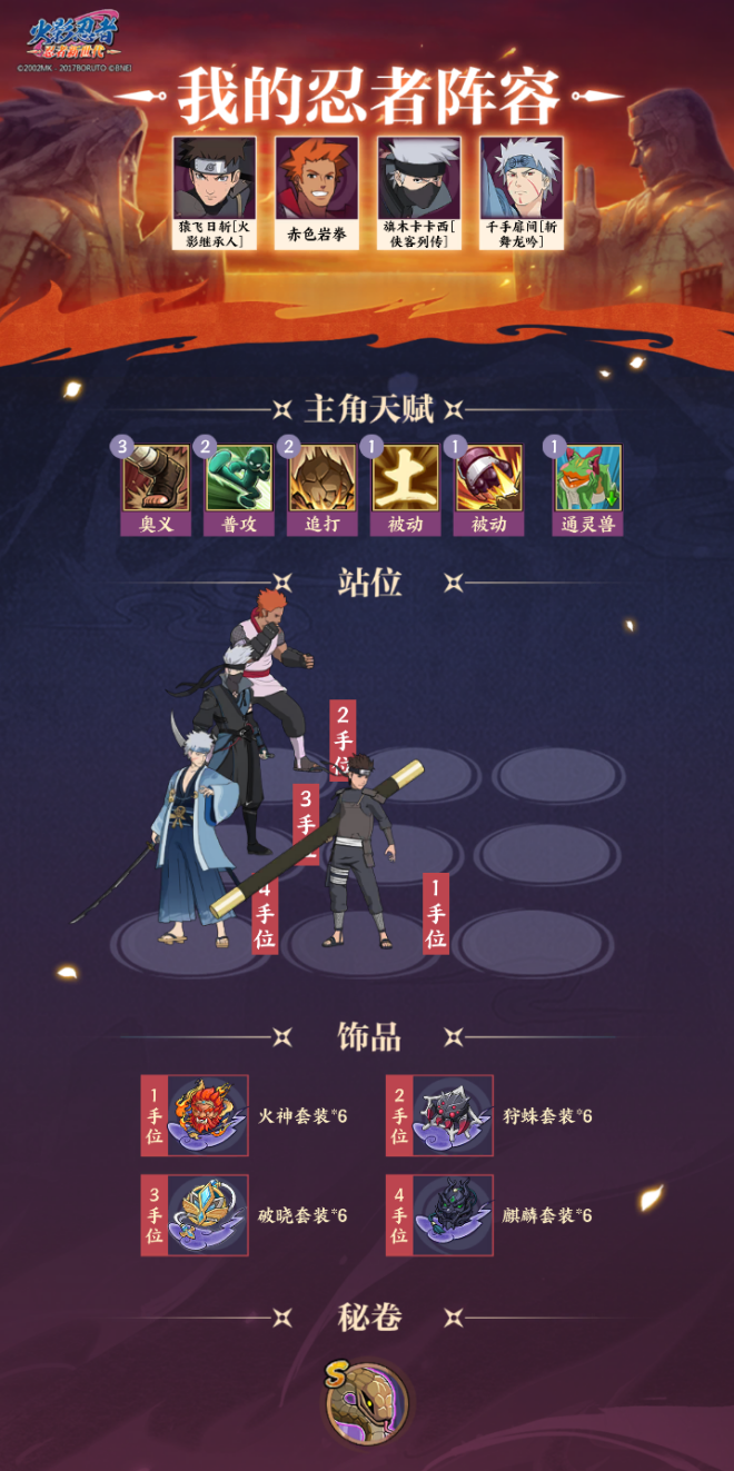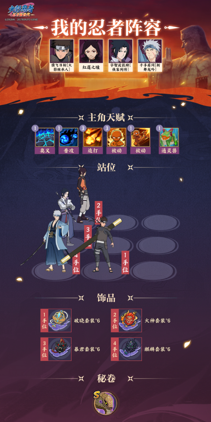 在《火影忍者:忍者新世代》中,存在着上古时期六道仙人大筒木羽衣创造出的九只尾兽,其中有一只尾兽名被后人称为“九尾”! 之后在木叶忍村里,九尾人柱力漩涡玖辛奈分娩时,神秘面具男将其劫走并打开封印放出了九尾,将九尾通灵至木叶大肆破坏! 忍界告急,众多忍者都在与九尾进行战斗,请赶快进入到《火影忍者:忍者新世代》中帮忙对抗九尾吧! 一、玩法简介: 1、每日有2次挑战九尾的机会,每日5:00挑战次数重置; 2、战斗中造成的累计伤害越高,可获得奖励越多; 3、个人累计伤害达到1千万和6千万后,九尾将切换阶段; 4、每个阶段有不同的作战光环,根据光环搭配不同的阵容和增益,效率会更高; 5、可以在鼓舞界面选择增益,九尾切换阶段时将会解锁新的增益; 6、在每个阶段挑战一次后,即可进行扫荡; 7、切换阶段后上一阶段的扫荡数据将清除; 8、排行榜奖励会根据个人总累计伤害在活动结束后以邮件形式发放。 二、鼓舞增益推荐与搭配思路: (一)第一阶段的固定光环效果:“我方所有忍者追打伤害提升500%”。 推荐增益:“冷静”。 搭配思路:可以使用追打次数较多、能增加追打次数、具有养成能力的忍者。 推荐阵容一: 推荐阵容二: (二)第二阶段的固定光环效果:“我方忍者普攻伤害提升100%,九尾免疫追打伤害”。 推荐增益:“强力普攻”、“体忍增强”。 搭配思路:可以使用普攻次数较多、能增加普攻次数、具有养成能力的忍者。 推荐阵容: (三)第三阶段的固定光环效果:我方忍者奥义伤害提升1000%,九尾免疫追打伤害且受到五行伤害降低100%。 推荐增益:“重拳出击”、“冷静”、“体忍增强”。 搭配思路:可以使用奥义伤害系数较高或具有养成能力的忍者。 推荐阵容一: 推荐阵容二: 三、结语: 《火影忍者:忍者新世代》中“激战九尾”活动正在进行当中,许多忍者学员们都在努力的贡献出一份自己的力量!请赶快加入我们,共同抗击九尾,保卫忍界和平! |