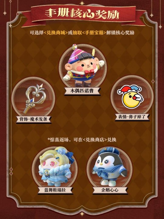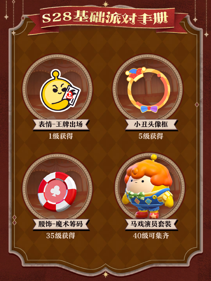 前往奇迹马戏团,欣赏马戏表演的盛宴!国民原创乐园游戏《蛋仔派对》全新派对季S28“奇迹大马戏”于1月9日重磅开启!大魔术师梨嘉、马戏乐手咻咻和魔术助手KK,三位身怀绝技的马戏大明星,三大充满奇幻色彩的马戏表演,灯光落幕,背后的阴影即将重现?!让我们走进这场奇迹大马戏,共同寻找幻梦后的真实回忆吧! “奇迹大马戏”派对季盛大开幕 “奇迹大马戏”派对季盲盒外观正式登场 作为为大家带来欢乐与奇迹的团长,大魔术师梨嘉的设计灵感源自经典的马戏团舞台魔术。身穿神秘紫色系服饰的她,将为你带来深不可测的奇幻戏法表演。黑色的高顶礼帽是梨嘉专属的时尚单品,环绕帽子的悬浮扑克牌是她拿手好戏的隐喻,而帽中探头而出的小白兔则是她为你准备的惊喜。 层层叠叠的裙摆如舞台的华丽幕布,而蝴蝶结中央点缀的金色时钟正提醒着你不要沉醉于魔术的幻梦泡影......她的表演如同命运的卡牌,永远不知道下一张会是什么惊喜。 大魔术师梨嘉 作为奇迹马戏团里最热情的乐手,马戏乐手咻咻的设计灵感源自永远充满干劲的小白鼠。他那一身雪白的绒毛象征着内心的纯净,而圆润脸颊上泛起的可爱红晕则代表了他永不褪色的热情,那双如蓝宝石般璀璨的眼睛和永远灿烂的笑容也向所有蛋仔传递着他音乐世界里最纯粹的快乐。 身体即是舞台,凭借头上的喇叭和腰间的鼓,咻咻独自一鼠便是一支完整的乐队,他带来的《疯狂马戏奏鸣曲》已拉开欢乐盛宴的序章,和他一起沉醉在音乐里吧! 马戏乐手咻咻 作为奇迹马戏团里天赋异禀的助手,魔术助手KK的设计灵感源自扑克牌中的“国王”形象。他身着宫廷礼服,夸张层叠的手工拉夫领,正是独属于国王的华丽和庄重;而他那双总是半眯着的眼睛和撅起的小嘴,都透露着他对这份舞台工作的无声抗议。 被“镶嵌”在一个巨大的白色扑克牌“K”框里的魔术助手KK,是否有一天能挣脱这被工作“框住”的命运,睡个好觉呢? 魔术助手KK 风靡全球的奇迹马戏团已抵达蛋仔岛,一票难求的奇迹大马戏盛大开演!你要一起欣赏这场本世纪最伟大的魔术表演吗? 派对季盲盒 “奇迹大马戏”派对手册奖励一览 “奇迹大马戏”派对季的派对手册分为基础版和高级版两部分,相应的奖励各不相同。本季基础派对手册的全部奖励有:800潮流纤维、17500瓶盖、稀有表情“王牌出场”、高级头像框“小丑头像框”、稀有配饰“魔术筹码”、高级装扮“马戏演员套装”。 基础派对手册 将派对手册升级为高级后,还能获得总价值3288蛋币的超值奖励。除了300蛋币、30彩虹币、20盲盒染色剂、20配饰染色剂外,还可获得稀有盲盒“魔术箱”、典藏配饰“小番茄面具”、稀有头像框“幻乐马戏头像框”、高级昵称框“入场券昵称框”、典藏动作“花式顶碗”、典藏配饰“厚蛋烧饭团”和稀有盲盒“小章鱼烧”外观。 高级派对手册 盛大的马戏表演当然少不了华丽的道具!典藏盲盒“木偶匹诺曹”、典藏配饰“魔术发条”及表情“鼻子掉了”惊喜上架。 新派对季“企鹅心心”、“蓝舞鞋瑞拉”也将一起返场,蛋仔们可在<兑换商城>进行兑换! 手册核心奖励 参与派对季活跃任务兑换“幻彩帐篷” “奇迹大马戏”派对季活跃活动正式开放!完成全新派对季活跃任务,即可前往兑换商店获取稀有盲盒“幻彩帐篷”、稀有配饰“小丑半面”、“卷卷胡子”,更有派对季限定全新表情“扑克脸”、“令鼠头秃”,动作“热身准备”、“闪亮谢幕”,和“几何乐园昵称框”等奖励等待兑换。 派对季活跃任务 完成蛋位任务、铁蛋五项及派对季故事赢派对奖励 “奇迹大马戏”派对季开启后,游戏将根据蛋位继承规则对玩家蛋位进行降级继承。与此同时,新派对季的开启也带来了新的蛋位任务,完成指定任务,即可领取外观“蟹籽烧麦”、 “蕉滴滴套装”,配饰“双色扑克”,及“马戏之王头像框”等丰厚奖励!铁蛋五项奖励同步开启,可获得“魔药头像框”。 前往奇迹马戏团,欣赏马戏表演的盛宴,一起探寻“奇迹大马戏”的全新篇章。《蛋仔派对》全新派对季剧情篇章重磅开启,体验剧情完成任务即可获得动作“脉动舞”,领取派对季专属奖励! 蛋位任务&铁蛋五项&派对季故事奖励 蛋圈任务兑换商店 “奇迹大马戏”派对季盛大开启,蛋仔们可通过蛋圈页面进入蛋圈任务,和蛋圈成员一起组队完成任务,即可兑换呦呦“小蘑菇”、配饰“魔力扫帚”和双人动作“大变活蛋”! 蛋圈任务兑换商店 派对季主题关卡欢乐来袭 全新派对季“奇迹大马戏”盛大揭幕,全新派对季主题关卡等待挑战!在一切精彩开始之前,请查收今晚的节目安排~“帽牌戏法”、“摇晃玩偶”、“马戏转盘”等关卡等你探索! 新派对季主题关卡 国民原创乐园游戏《蛋仔派对》全新派对季“奇迹大马戏”于1月9日盛大开启,让我们伴随着疯狂马戏奏鸣曲的乐声,共同开启本世纪最华丽的演出!! 【关于《蛋仔派对》】 咔咔~欢迎光临蛋仔岛!(*?▽?*)《蛋仔派对》是一款拥有5亿玩家的国民原创乐园游戏。在这里,你将化身Q萌的蛋仔,在盲盒机背后的神秘世界——蛋仔岛,展开一段奇妙的闯关之旅。游戏内含上百张风格各异的地图关卡、数十种休闲娱乐玩法,不怕手残,趣味无穷~海量高萌盲盒外观,来邂逅你的心动款!自由度极高的乐园编辑器,助你打造独一无二的乐园地图!更有充满脑洞与