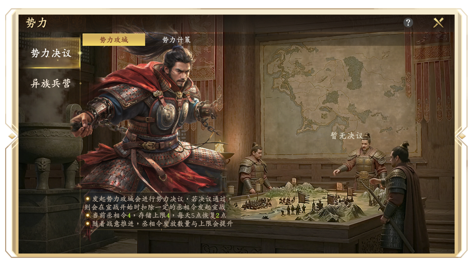 《王于兴师》「两魏五战」剧本1月31日正式开启!各位君主将置身于两魏对抗、三路鏖战的全新地图,在直道纵横、战线交织的宏大战场中亲掌兵马,经营战线。更有刘邦、高欢等名将率军助阵,与你一同在双雄争霸中书写属于自己的不朽霸业! 「战线攻防 寸土必争」 「两魏五战」采用全新两魏对抗地图,各位君主将被划分为东魏、西魏两大势力,在三个交战区围绕势力城池、军事堡垒等关键据点展开战斗。 地图中的军事堡垒与势力城池皆由“直道”相连,其中上、中、下各有一条特殊的直道,当这三条直道两端的据点分属不同的势力时,该段直道将成为“前线”——前线两端的据点将会每隔五分钟自动派遣一批势力部队沿着直道推进。 每批势力部队将以固定阵型同速前进,行军过程中可与敌对玩家部队交战,当敌对部队离开一定范围后,势力部队将会自动脱离战斗并返回前线。当己方势力部队推进至敌方据点一定范围时,将会对敌方据点造成一定损害,随后己方势力部队将会消失。 若直道两端的据点均属于己方势力,各位君主可以在据点进行“急调”,部队将以较高的移动速度沿着直道前进。此外,各位君主还可以将麾下部队委托给所属势力,委托成功后势力会自动将委托的部队派遣至前线参与战斗。 「王旗所指 攻城略地」 新剧本中,军事堡垒与势力城池的归属将随着天下阶段与战场情况而变化,当己方势力据点与敌方势力据点相连时,符合条件的联盟可以对敌方据点发起“势力攻城”。 发起势力攻城并经势力内其他主要联盟投票决议后,即可消耗丞相令发起预约攻城。预约攻城期间,前线的势力部队将随时间发生变化: - 在攻城开始前20分钟:前线双方的势力部队刷新位置将调整为被宣战城池两边的特定位置,且进攻方的势力部队将新增投石车部队; - 在攻城时间到达的前5分钟:双方势力部队将前往城池区域,攻击所有敌对单位,此时前线将不再生成势力部队。 「战意昂扬 奇兵破局」 在双方激烈争夺的交战区域,散布着各种类型的“柔然军营”,攻占柔然军营后可以获得丰富的资源或装备,部分柔然军营还会提供额外的增益效果: - 攻破“柔然营寨”后,将会为就近的前线增派若干柔然部队,并为势力内的君主提供大量联盟资源; - 攻破“柔然大营”后,势力可以获得大量势力战意值,并且下一次势力攻城时可以获得柔然可汗支援与势力部队增益,参与攻占大营的君主还可以获得装备与资源奖励。 此外,「两魏五战」剧本将引入“势力战意”系统,赛季开放时,双方势力将各自拥有独立的战意进度条,该进度条会随时间自动增长,也可以通过攻占柔然大营获得更多势力战意值。当势力战意值积累至一定阶段后,将获得势力增益效果并解锁服务器功能。在达到特定条件后,还可触发“特殊状态”,为己方势力部队带来强力增益! 「全新将领 全新技能」 在「两魏五战」剧本中,四大全新将领——刘邦、张骞、高欢、花木兰将率军助阵,助力各位君主在两魏对峙中书写属于自己的结局!更有「洞若观火」、「拖刀计」、「平心静气」、「因敌制变」四大全新技能助力各位君主在新剧本中成就天下霸业! 烽烟再起,天下两分。《王于兴师》全新剧本「两魏五战」,静待君临,再定天下! 关于《王于兴师》 《王于兴师》是一款以“立体地形战场”和“个性化将领搭配”为核心体验的即时沙盘战略手游。游戏采用了真实立体地形,每个部队都拥有不同的射程,精准指挥每支部队,搭配真实的体积碰撞系统,每一次交锋都是策略与微操的双重考验。在《王于兴师》这个宏伟的古代战场上,你的军事天赋将会尽情释放! |