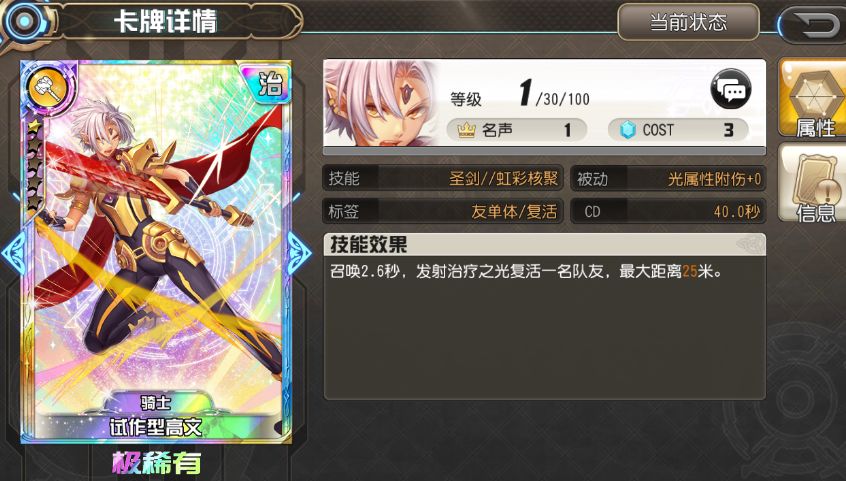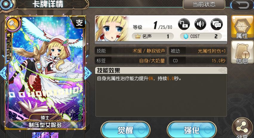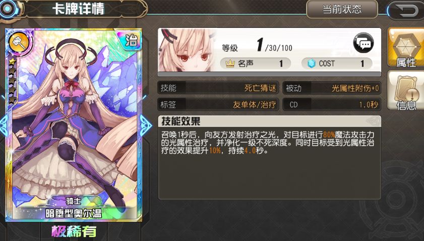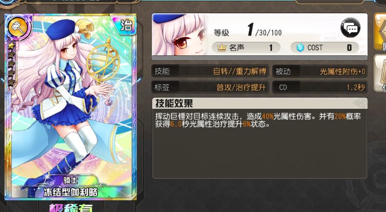 但是之前预约过的玩家应该会拿到一张 伽利略 ,也就是高级普工卡。在攻击倍率上这张卡没有别的增幅,但是她多一个几率提升治疗量的状态,当你是一个单属性奶妈的时候,如果有这么一张普攻卡,对你治疗量的提升还是很有帮助的。 普攻卡其实没什么太多要说的地方,重点还是说说治疗卡吧,毕竟奶妈主业救死扶伤,哪怕是拿着一个大锤子看起来像个T手里却捏着四张炸弹卡假装自己是个C一样但是我知道我是个好奶妈。 和所有的奶妈一样 治疗卡 分两种:单体和群奶。