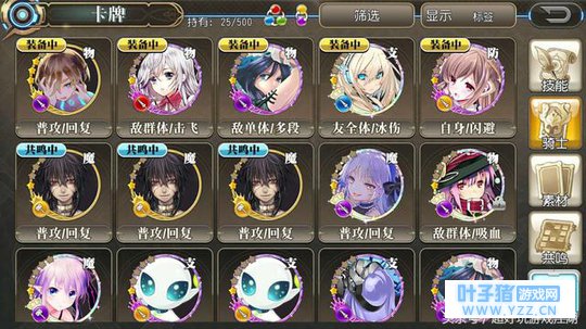 本作也是一个既看脸,又看技能搭配的游戏,氪金有用,但更考验的是耐心。所有作为技能键的卡牌都需要我们自己去"扭蛋"选项中抽取,每次抽取消耗一个扭蛋券,抽出来的卡牌稀有程度不同,但这并不是决定你技能好坏的重要因素,由于COST值每次使用有限,太过稀有的卡牌消耗COST太多,一旦COST消耗殆尽,再强力的技能卡牌也毫无用武之地。相反,很多稀有度不是很高的卡牌,消耗COST值少,在玩家耐心将它升级之后同样可以变得很强力。尝试用不同的卡牌进行不同的搭配,打出不一样的连招,也是本作的一个亮点。