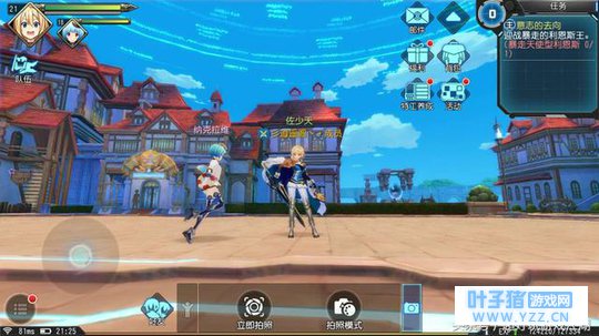 要说本作的一大特色,那一定是环视360°,俯仰180°的3D视角自由切换,在屏幕的最下方,切换到聊天栏目,在右侧你会看到一个类相机图标,点击之后选择直接拍照或者切换视角拍照,玩家既可以以第三人称视角去拍,也可以调整为第一视角,在第一视角状态下,玩家拿着手机360°无死角转动方向,即可改变屏幕中风景的内容。这个功能让玩家在游戏中除了可以做任务,战斗之外,还能像一个游客一样拿着相机在不列颠大陆游历,将自己喜欢的场景照下来。