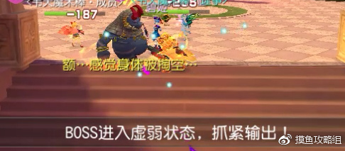 在进行了一段时间的战斗后,BOSS会进入虚弱,是输出的机会。
