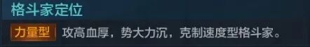 人物操作详解 属性定位 生命4000+,耐揍,攻击450,加上自身的技能连起来,对方没闪避血薄的都快可以直接带走了,移动速度5.8和低一点的速度型格斗家一样,完全不虚速度型的游走战术。