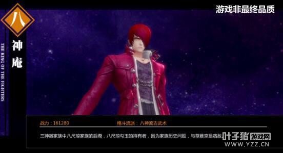 进入游戏后,首先出现的就是拳皇系列的人气王八神庵。从八神庵的造型可以看出来,拳皇世界的人物造型在完美还原拳皇经典角色的基础上,加强了特效和粒子效果,3D的人物建模也让角色看起来更加生动逼真。