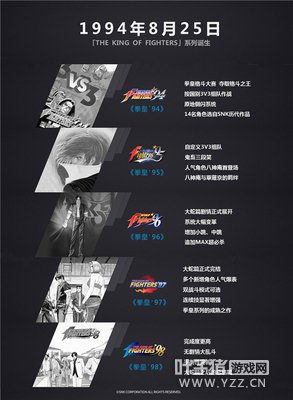 拳皇近未来生态分布 【23年热爱 “拳皇”不止于游戏】 拳皇诞生至今,已走过23个年头,从初出茅庐的 ’94、’95,到超人气的KOF’97、’98,从开始变更命名方式的KOF11,到近年的KOF13、14,拳皇所凝结的对游戏的热忱始终在延续。截至目前为止,拳皇系列出品了正统篇章4篇(大蛇篇、音巢篇、阿修篇、新章),正统作品共计14部,人物角色总数200人以上。